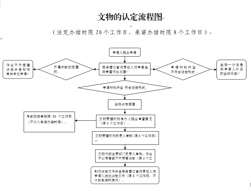 县级以上地方文物行政部门根据调查研究和专家意见,作出是否认定为文物的书面决定。对于不可移动文物的认定,自县级以上地方文物行政部门公告之日起生效;可移动文物的认定,自县级以上地方文物行政部门作出决定之日起生效。列入文物收藏单位藏品档案的文物,自主管的文物行政部门备案之日起生效。