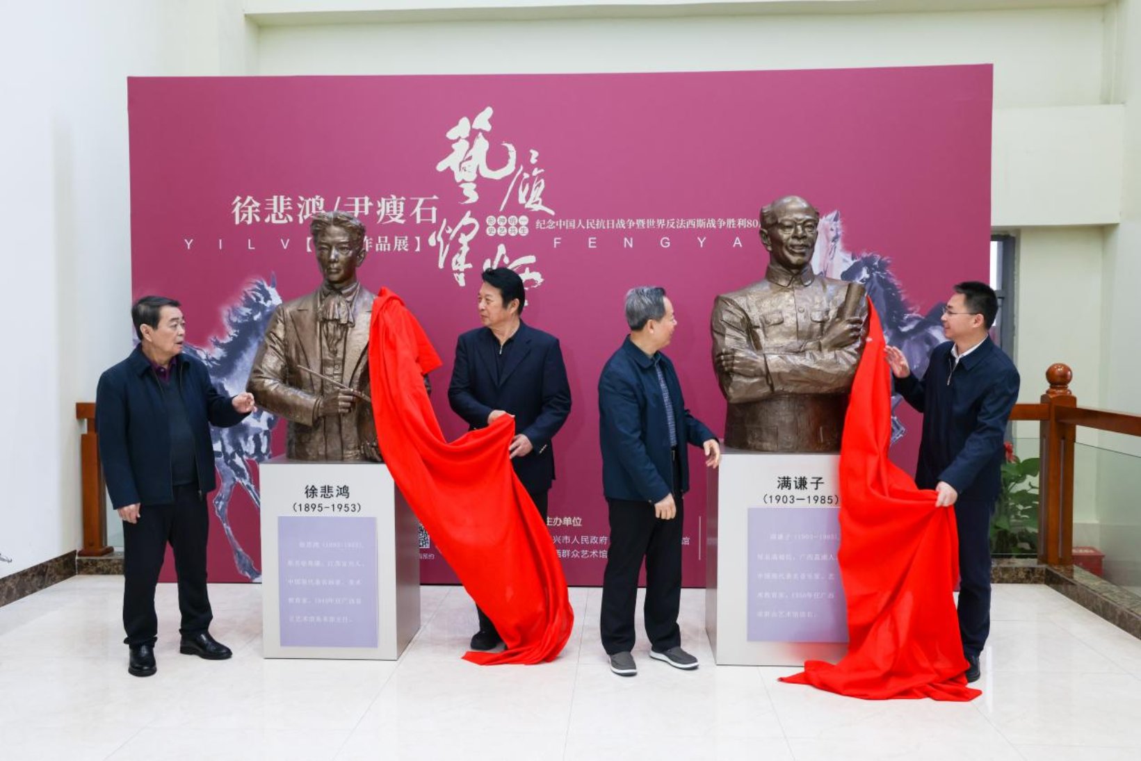 与会嘉宾共同为徐悲鸿先生及满谦子先生的雕像揭幕