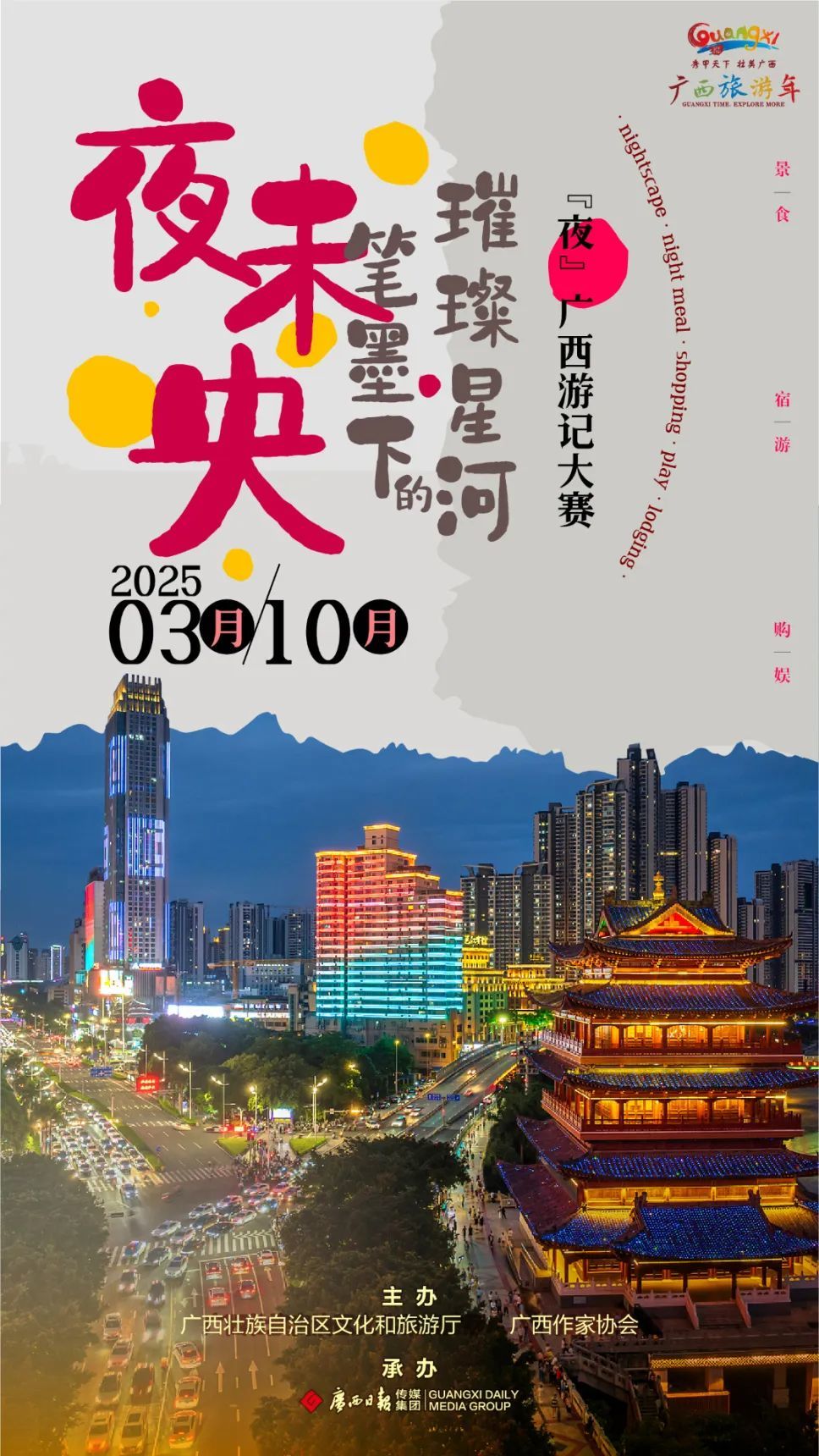 山水为卷,宿居成诗。2025年3月17日,2025广西旅游民宿大会将在崇左市拉开帷幕!作为广西文化和旅游厅重点打造的年度活动,大会以“康养旅居 宿在八桂山水间”为主题,汇聚行业精英、民宿主理人、投资大咖与文旅爱好者,共谋民宿产业升级之路,共绘乡村振兴新图景,为游客解锁“住进山水、沉浸文化”的旅居新玩法!赋能民..