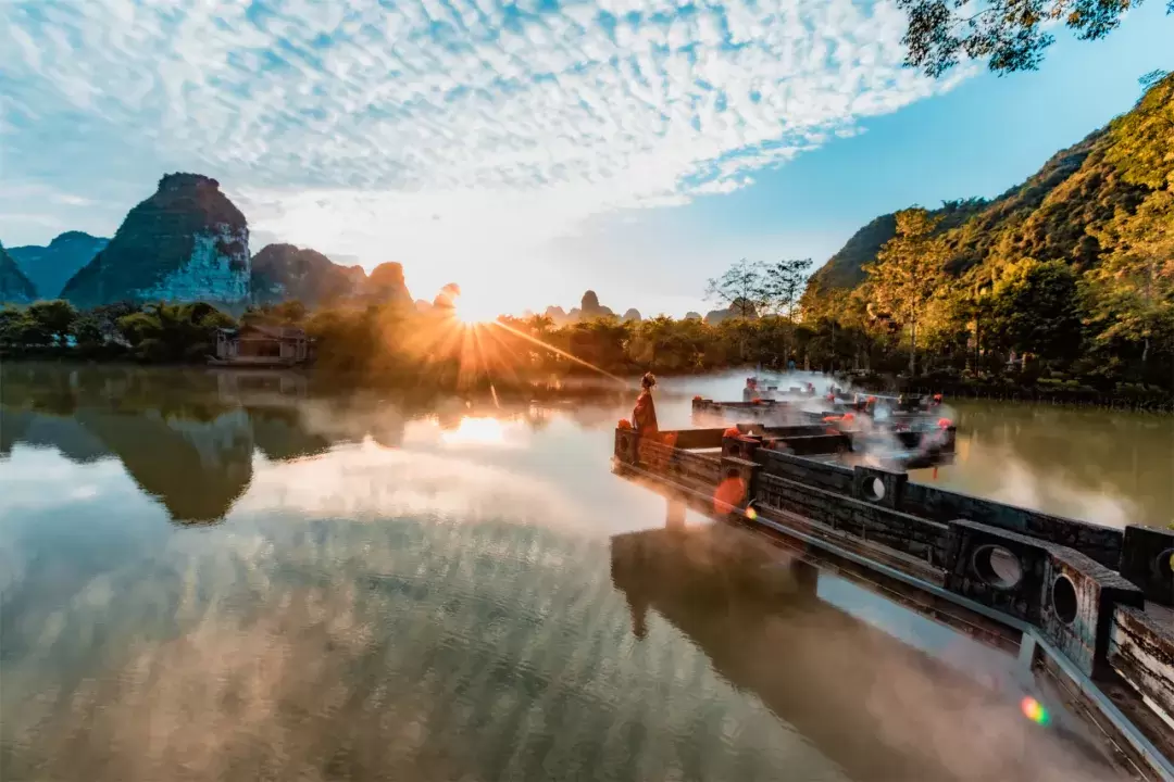 清晨的雾气还萦绕在八桂大地的吊脚楼檐角,竹篾筐里已经盛满阿妈刚蒸好的五色糯米饭,这里是山水间的广西,非物质文化遗产在广西三月三的铜鼓声里苏醒,火塘边的油茶煮沸了千年时光,跟我一起出发吧!广西三月三,以脚步丈量,去遇见米粉蒸腾的清晨,邂逅酸笋发酵的黄昏,在锅铲碰撞的烟火气里尝一口滚烫的广西故事。▲..