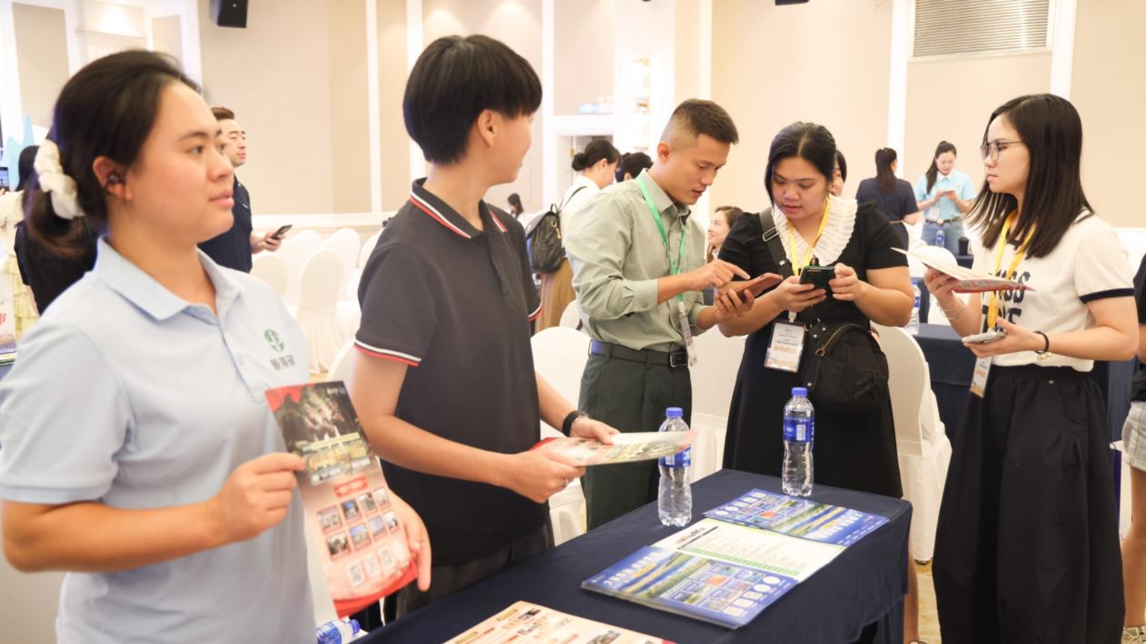 在广西研学旅游产品展销活动中,来自广西14个设区市的研学旅游服务商带来了暑期全区精品研学旅游产品300余件,包括城市探索、自然人文、红色文化和生态实践等相关精品研学旅游线路和体验项目。活动现场开设合作洽谈区,精准实现供需对接,为区内外研学旅游服务商提供高质高效的咨询洽谈服务。