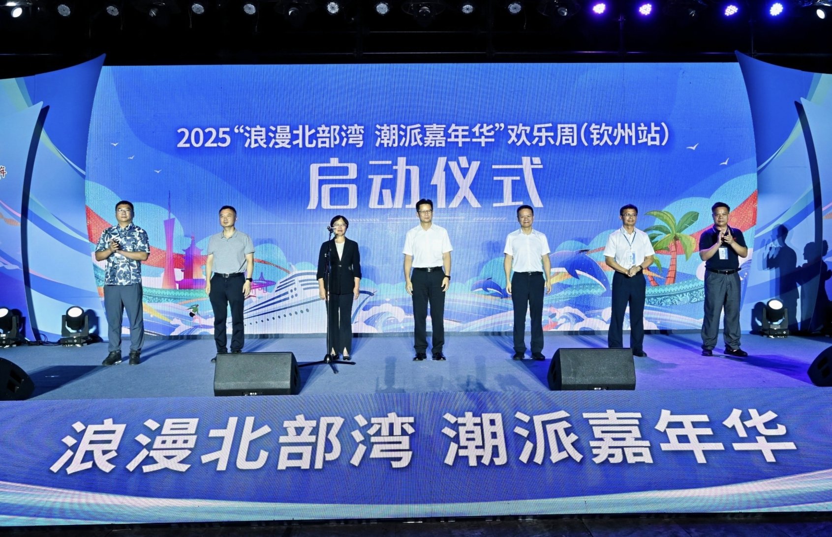 为落实自治区党委、政府关于2025广西旅游年活动的部署,加快北部湾国际滨海度假胜地建设,6月20日晚,2025“浪漫北部湾 潮派嘉年华”欢乐周(钦州站)在钦州市永福广场开幕。活动由自治区文化和旅游厅、钦州市人民政府共同主办,钦州市文化广电体育和旅游局承办。来自广西14个设区市,广东省湛江市、茂名市、阳江市,海南省的代表出席活动。