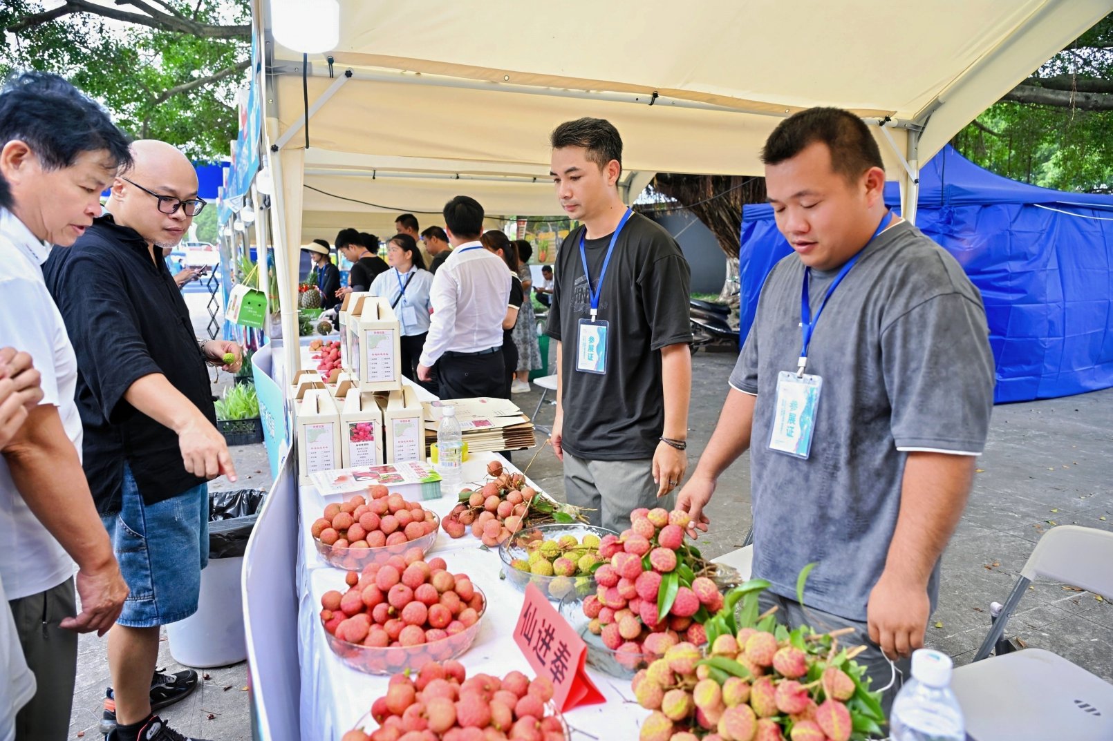 “平陆运河·通江达海”市集上展出的钦州荔枝