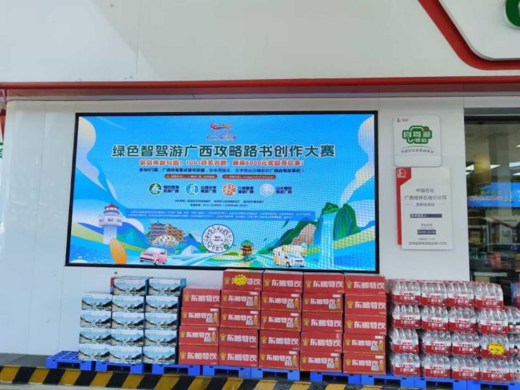 中国石化加油站电子大屏对“绿色智驾游广西”攻略路书创作大赛进行宣传