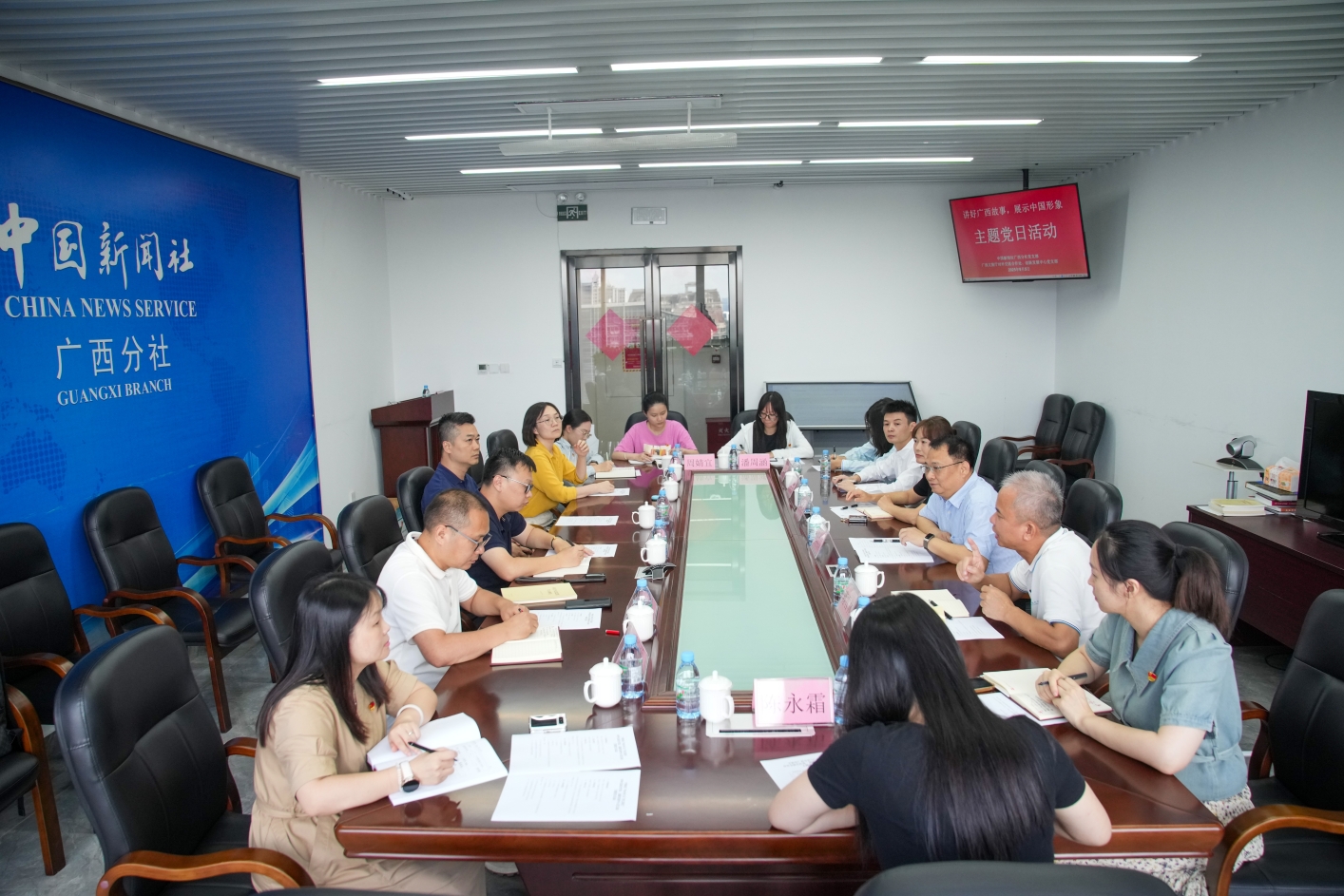 此次主题党日活动以“讲好广西故事,展示中国形象”为主题,结合原著原文和广西文旅、中新社国际传播实践,党员干部职工认真学习了《习近平文化思想学习纲要》第十一章——“展现可信、可爱、可敬的中国形象”,探讨如何进一步提升国际传播理论水平与实践能力,助力广西文化旅游高质量“走出去”。