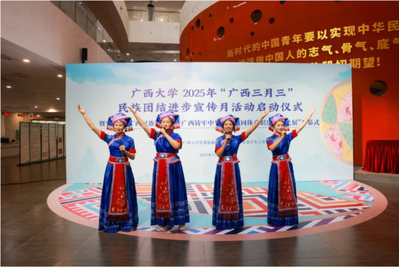 开幕式上,广西大学党委副书记宁旭初指出,民族团结是国家繁荣昌盛的基石,是社会和谐稳定的保障,广西大学始终将铸牢中华民族共同体意识融入人才培养全过程,切实做好新时代学校民族团结进步教育工作。他强调:要以“探索者”的姿态,深挖文化根源,铸牢认同之基;以“行动者”的担当,践行平等互助,书写团结篇章;以“传播者”的使命,勇担时代责任,促进文化交融。