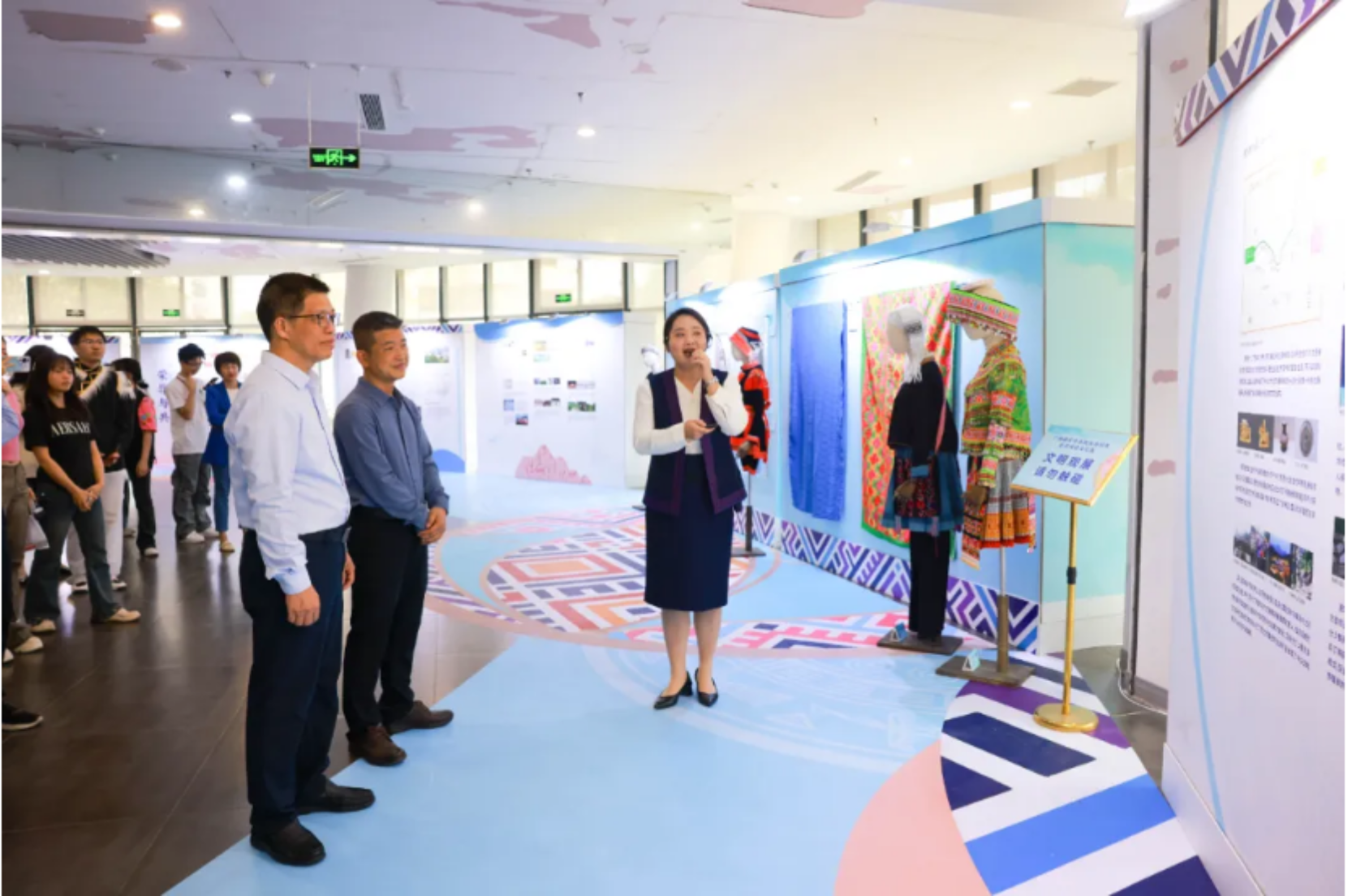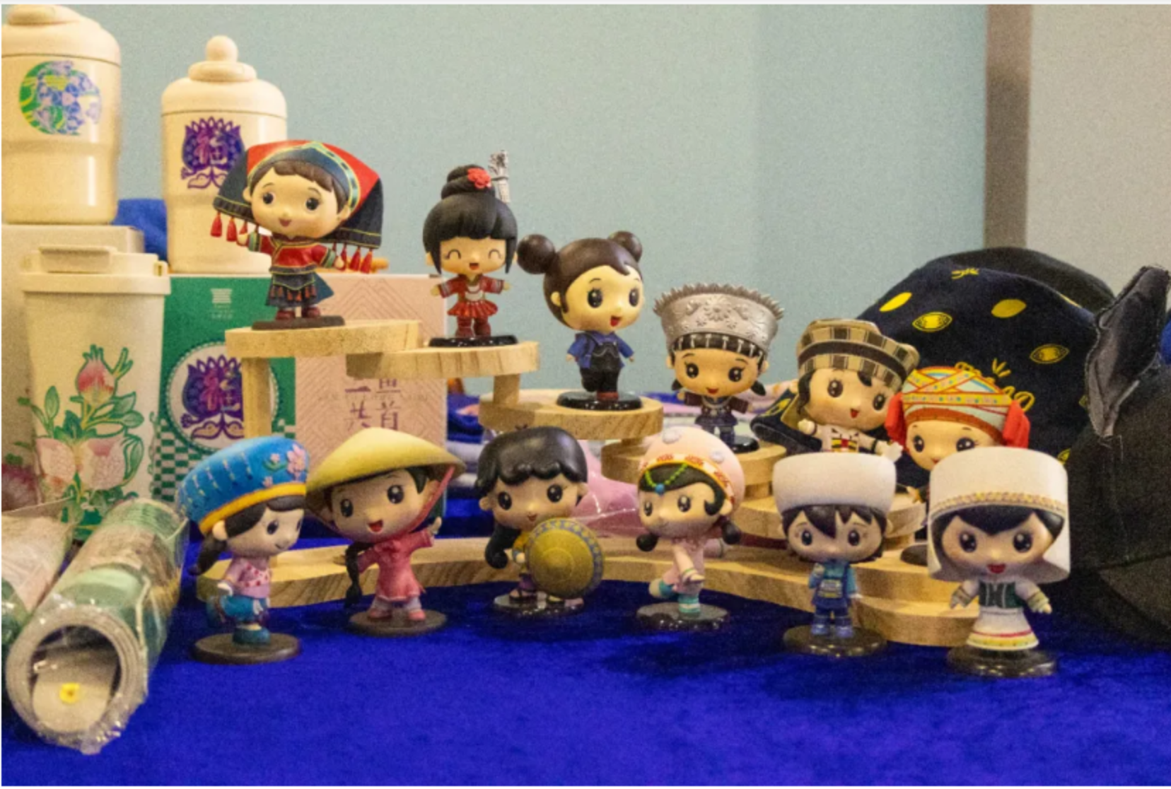 在“铸牢中华民族共同体意识”系列文创产品展示区,广西民族博物馆工作人员为师生们阐释了此系列文创产品的设计理念及其背后的文化故事。