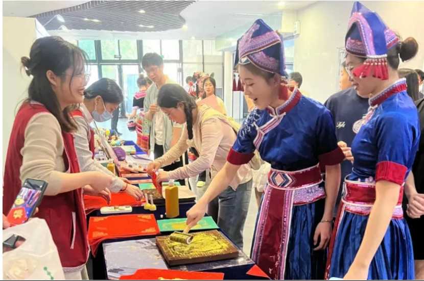 此外,广西大学的师生们还体验了广西民族博物馆“龙凤福”拓印活动,学习了“龙凤福”纹饰的相关历史背景故事。