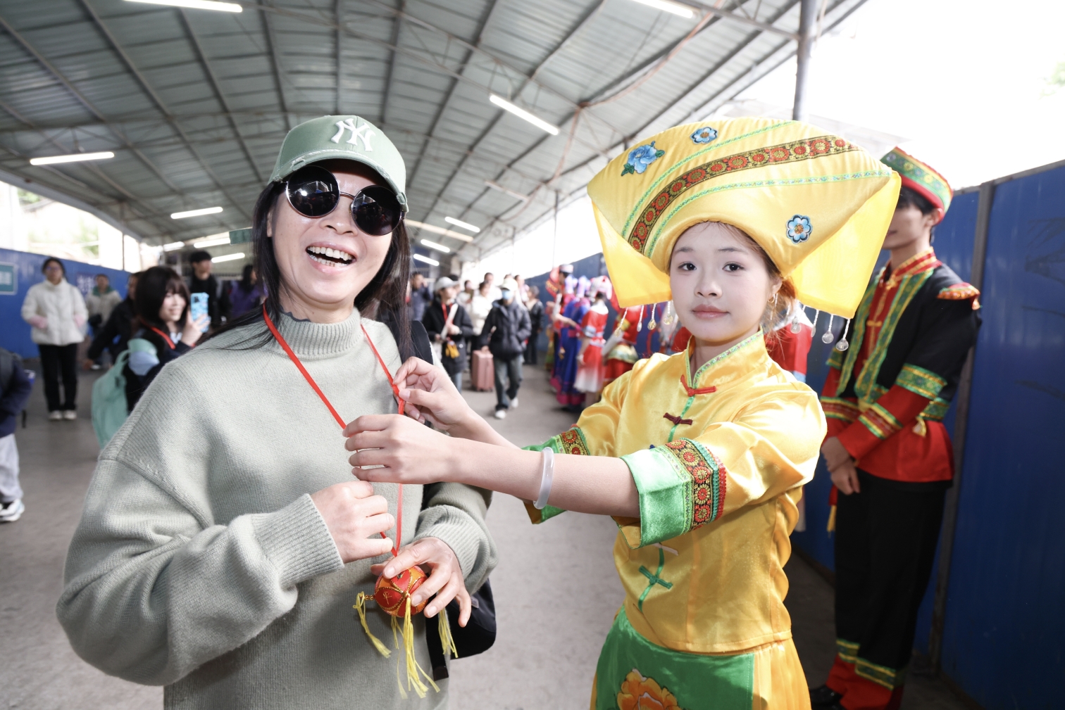 此次粤港澳大湾区专列的游客大部分为文艺爱好者,他们将奔赴南宁青秀山、相思湖小镇、武鸣、广西民族博物馆、崇左大新德天跨国瀑布等多个景点,与广西民歌爱好者互动,共同唱响山歌好比春江水,沉浸式体验广西三月三的欢乐氛围,感受广西“歌海”的魅力。