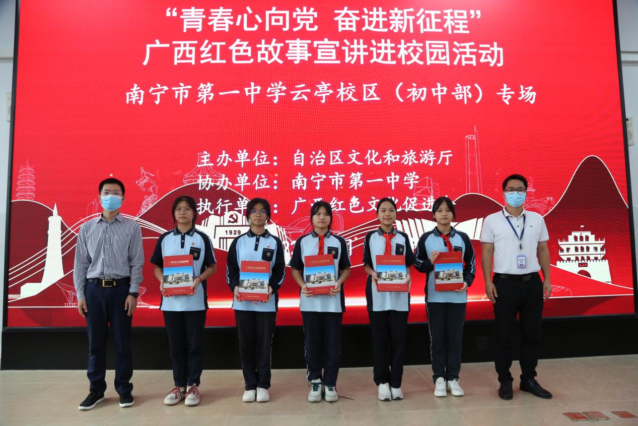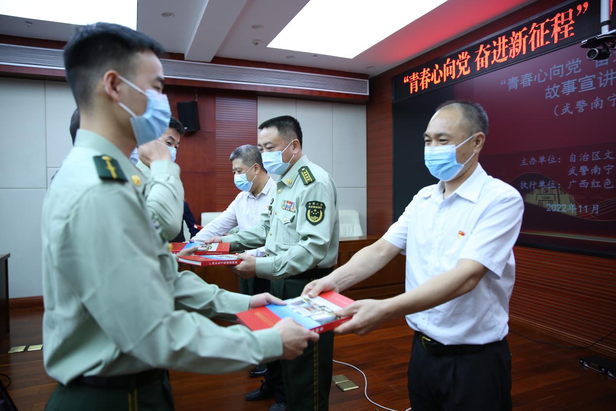 除红色故事宣讲以外,自治区文化和旅游厅还向武警广西总队南宁支队、南宁市第四中学、南宁市第一中学捐赠了《广西红色文化旅游图集》。