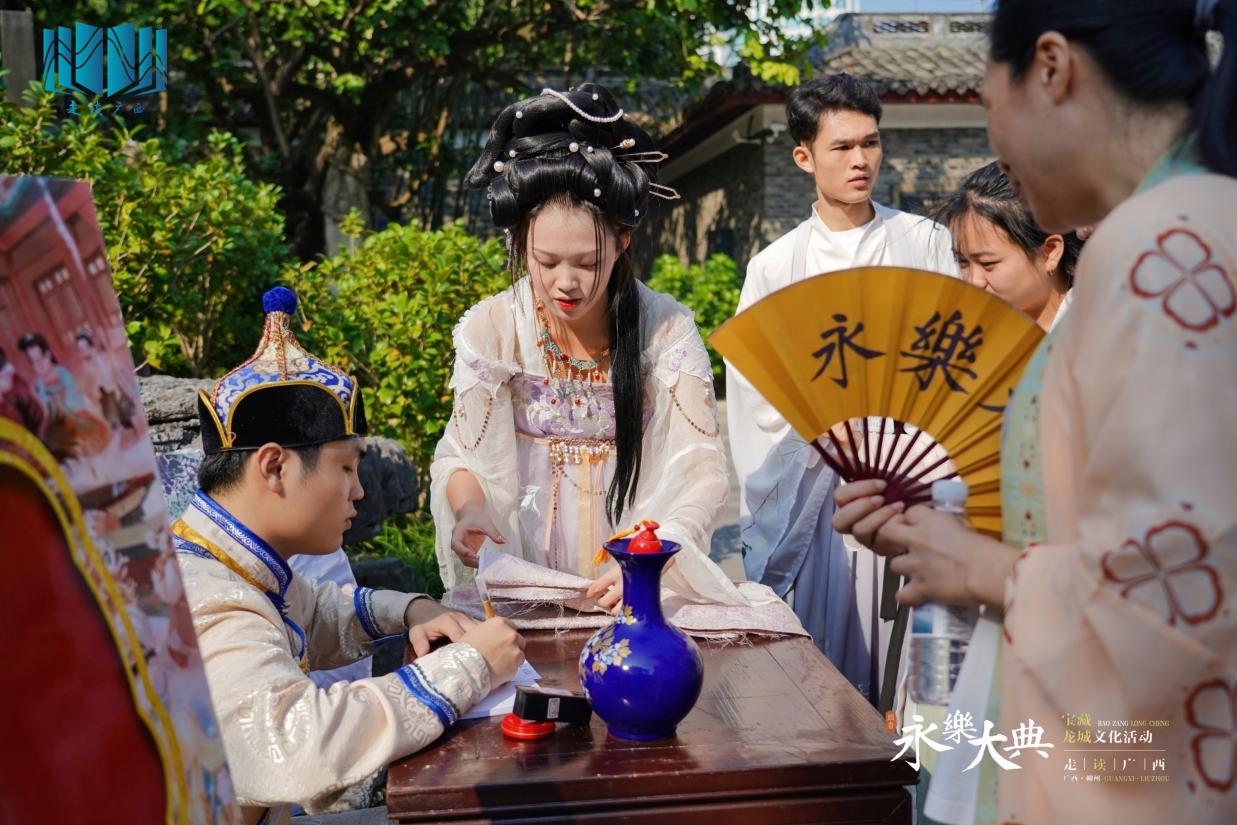 剧本杀作为当下流行的集知识属性、心理博弈属性、强社交属性于一体的娱乐项目,深受年轻群体欢迎。此次“跟着《永乐大典》走读广西:宝藏龙城”文化活动创新采用实景剧本杀的形式,以《永乐大典》为主题原创剧本,巧妙地将景区景点、文化名人、传统文化等元素融入其中,探索文旅融合发展新路径,让中华古籍真正“活起来”,拉近了优秀典籍与大众的距离,进而加深广大读者对《永乐大典》的认知和解读。这是“跟着《永乐大典》走读广西”系列走读文化活动的又一大胆尝试和取得的宝贵成功经验。