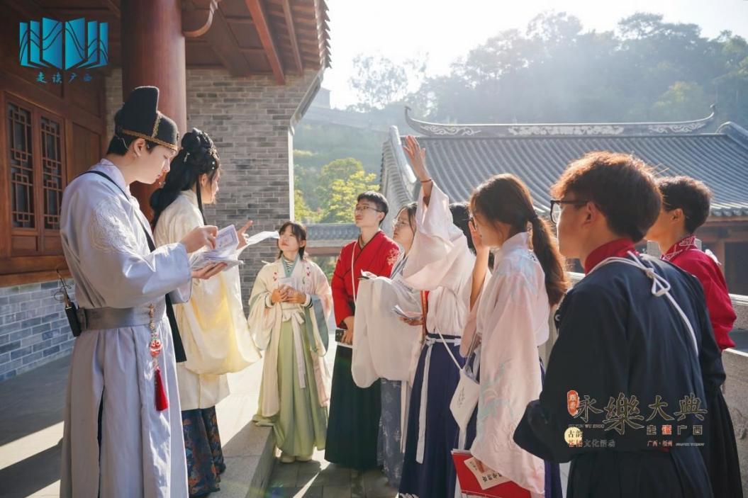 本次活动作为2023年“跟着《永乐大典》走读广西”系列文化活动的收官策划,创新采用了大型实景沉浸式阅读分享会与国风“剧本杀”相互融合衔接的形式,巧妙地将景区游历、文化访谈、名人故事、传统文化等多种元素相结合,让读者们展开穿越时空之旅,在切身感受梧州当地文化的同时,享受大典集成的成就感,增强文化自豪感。