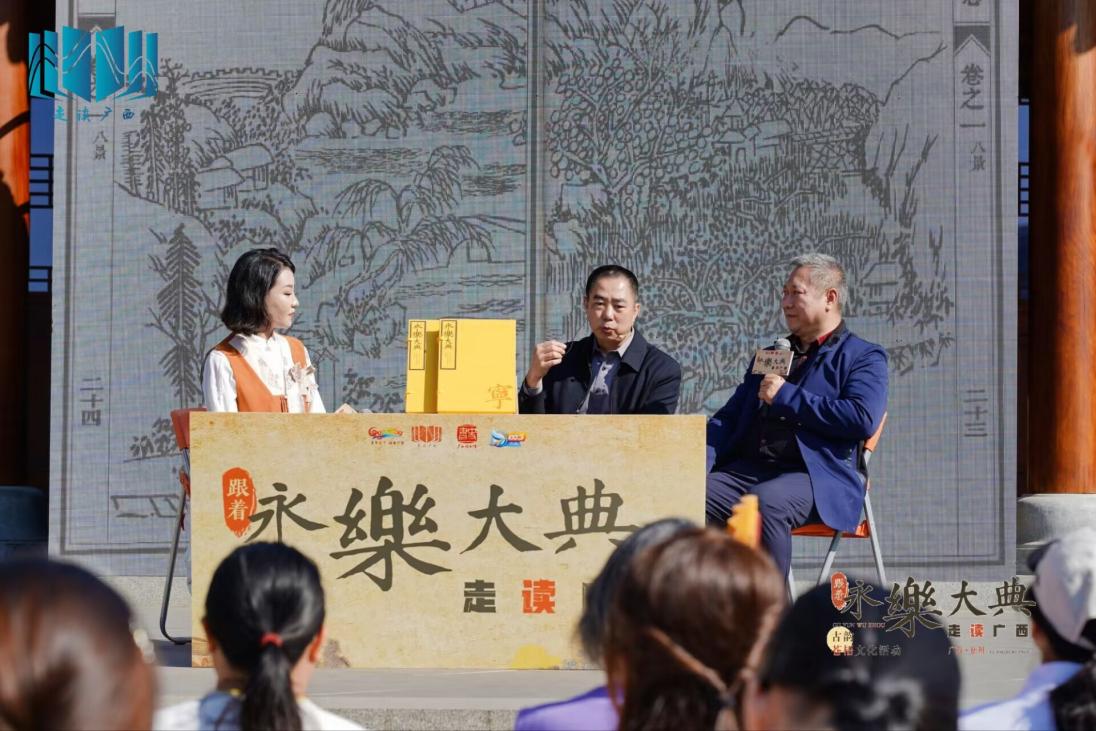 自今年7月起,广西壮族自治区图书馆以“珠还合浦 历劫重光——《永乐大典》的回归和再造”广西巡展为切入点,在自治区文化和旅游厅的指导下,策划并与广西广播电视台合作实施了“跟着《永乐大典》走读广西”系列文化活动。活动自“乐载邕州”在南宁启动,经“珠还合浦”“山水浔州”“宝藏龙城”,至“古韵苍梧”梧州收官,历经数月,先后在南宁、合浦、桂平、柳州、梧州开展五场重点文化活动及《永乐大典》主题活动若干,每场活动均结合活动举办地的相关典籍与文献,深入挖掘文献内涵,突出本地文化特色,因地制宜,确定不同的活动重点及形式,力求活动有新意、有创意、有诚意,得到了参加活动的读者高度肯定和好评,以及社会各界的广泛关注,对于推动中华优秀传统文化创造性转化、创新性发展,进一步丰富和满足人民群众的精神文化生活具有明显重要意义。