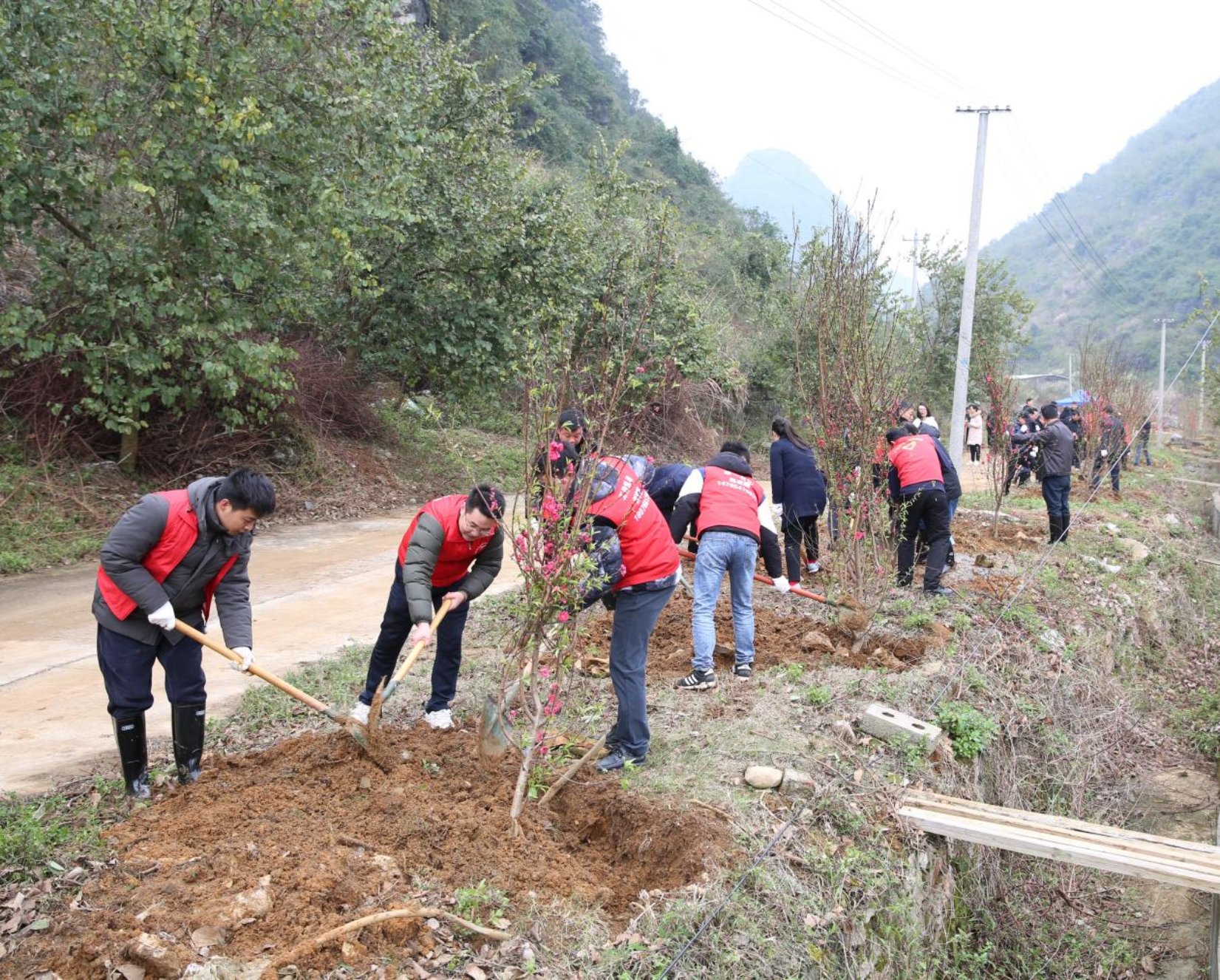 3月1日,自治区文化和旅游厅在阳朔村鹰嘴桃种植基地开展了2024年义务植树活动。