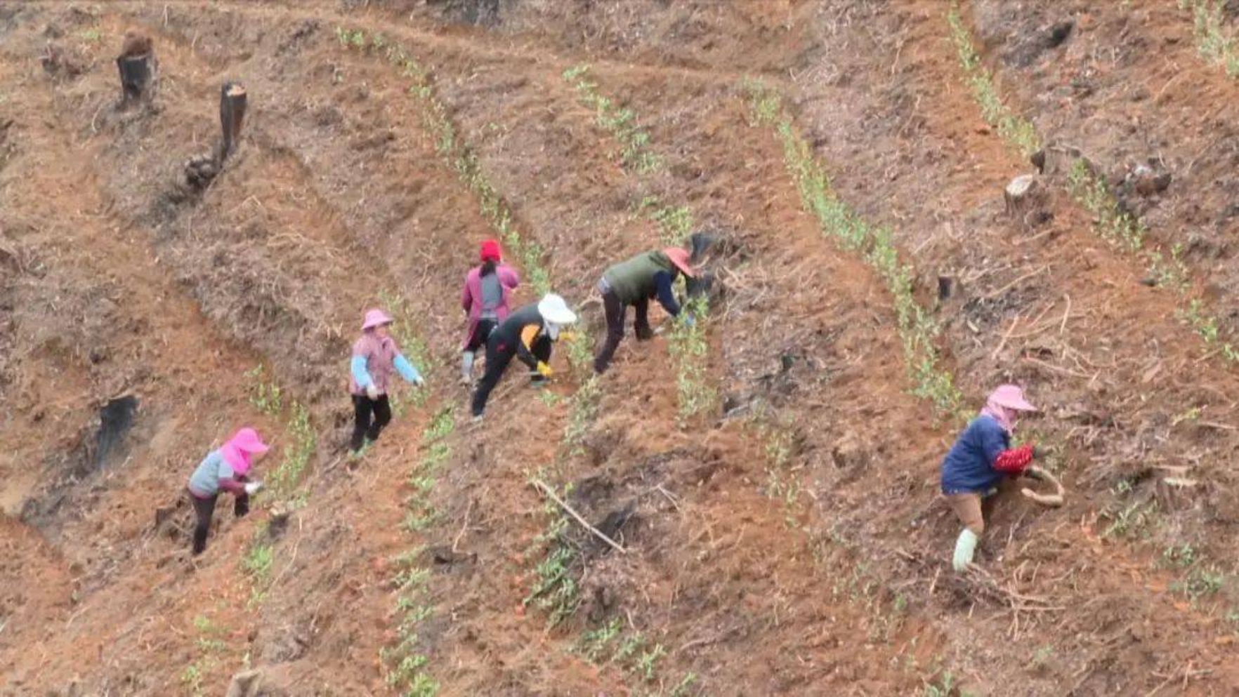 福登村有机茶基地,脱贫户正在抢种茶苗。