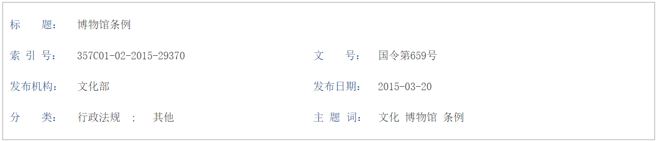 | 标 题:【行政法规】博物馆条例 | |