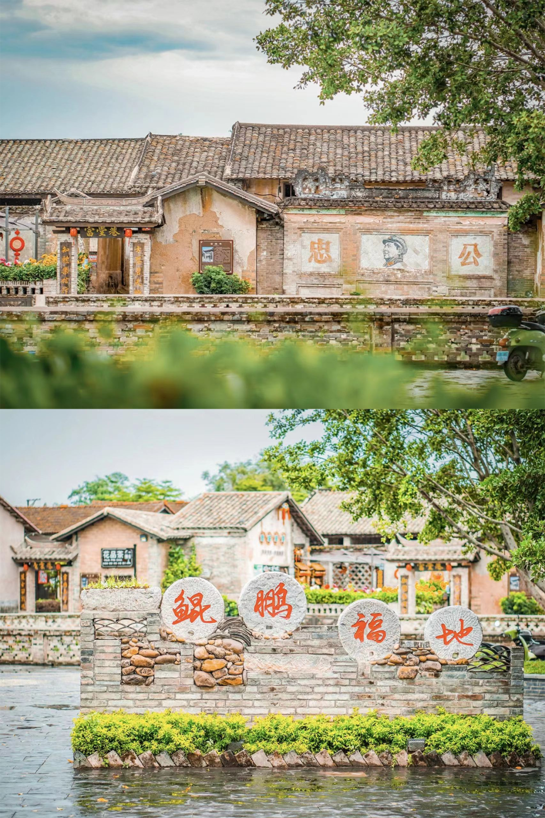 村子依山傍水,岭南风格的民居、宗祠、碉楼、桥梁、城墙分布其间,画龙点睛般描绘了鹏垌村的美景。