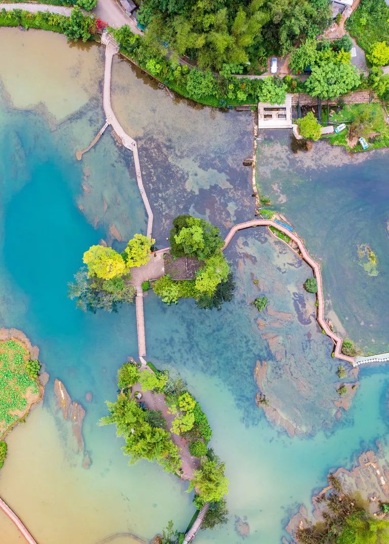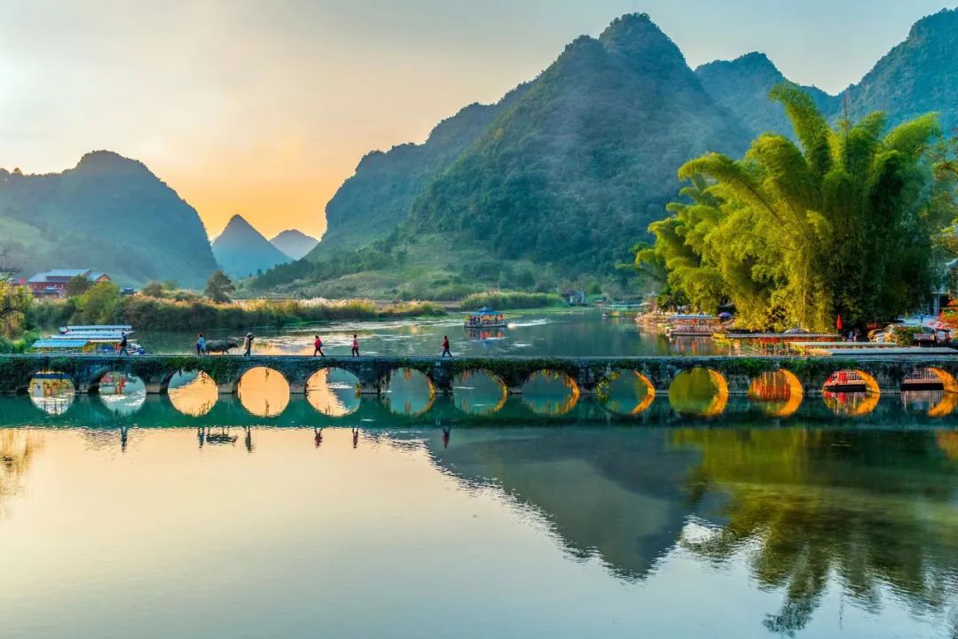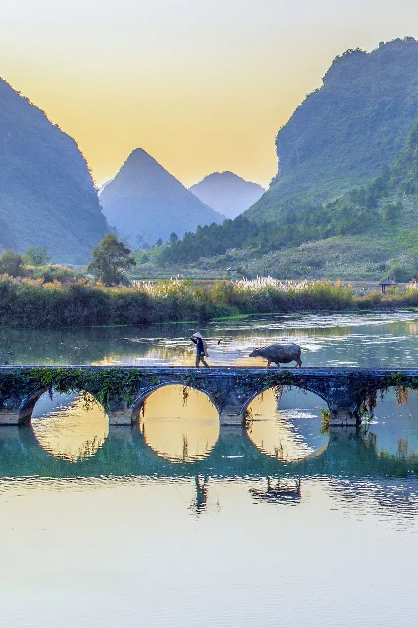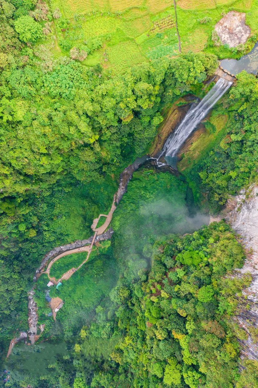 那是靖西鹅泉带来的诗意,那是通灵大瀑布带来的震撼,那是大石围天坑群带来的神奇,那是切切实实的赞叹……鹅泉不大,却是亚洲第一大跨国瀑布——德天跨国瀑布的源头,与大理蝴蝶泉、桂平西山乳泉并称为西南三大名泉。鹅泉的美,是小桥流水带来的恬静,也是夕照长桥下的渺渺烟波。当暮归的老人牵着黄牛,从古桥上经过,那不只是绝佳的拍摄时机,也是触动心灵的信号。“青山看不厌,流水趣何长。”逗留在鹅泉的时间里,仿佛只需一阵晚风,就可以吹走所有烦恼。灵泉夕照、古屯念安、三泉映月……鹅泉的温柔足够让人动心和着迷。通灵大瀑布若有灵,我想与它对话。站在瀑布底下,仰望不断倾泻而下的白练,感受隽永的造物美学。通灵大瀑布单级落差高达188.6米。通灵峡谷被称为“地球上一道美丽的伤痕”。瀑布声带着旷达,裹着透人的凉,如滚滚春雷充斥整个峡谷,给人震撼,也给人惊喜。喀斯特地貌与云贵高原的碰撞在这里形成了绝美的天地,气派非凡。这里好似现实版的绿野仙踪,葱郁茂盛的森林藏着许多不为人知的珍稀植物。神奇的地下河、洞中瀑布,神秘的古石垒、古悬葬,那是揭开通灵大瀑布面纱,一睹真容的地方。“水天一色,纯净至极。”这不是西藏的纳木错,是百色的浩坤湖。明朝的泗城土官岑云汉《东湖游记》:“泛泛秋江不系舟,如同身世两悠悠。洞箫一曲清波上,露冷月斜天尽头。”山的秀美,湖的清澈,雾的迷幻,时光似乎把这里雕刻成了自然的风情,让人陶醉其间。大石围天坑群,桂西北大石山的皱褶里隐藏着的世界奇观。在全世界13个超大型天坑中,分布在百色乐业的就有7个,因此乐业县被誉为“世界天坑之都”“世界天坑博物馆”。从被发现那一刻,大石围天坑群就以傲人的姿态惊艳世人。它的存在似乎是在警醒着人们:世界有探索不完的神奇,壮游山水,别有洞天。▲乐业大石围天坑群——黄猄洞天坑 图/图虫@黄永佳
