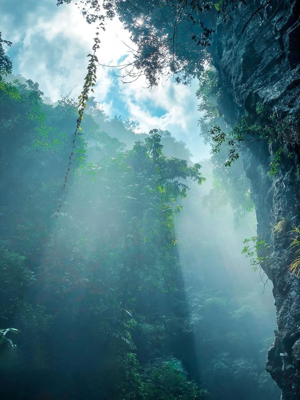 天上有仙舟,其名曰:“云海天舟”。沿着彩虹步道,行至舟上,俯瞰天坑和原始森林,练就惊人的胆量。大石围天坑群的喀斯特漏斗奇观,是用言语无法形容的震撼。