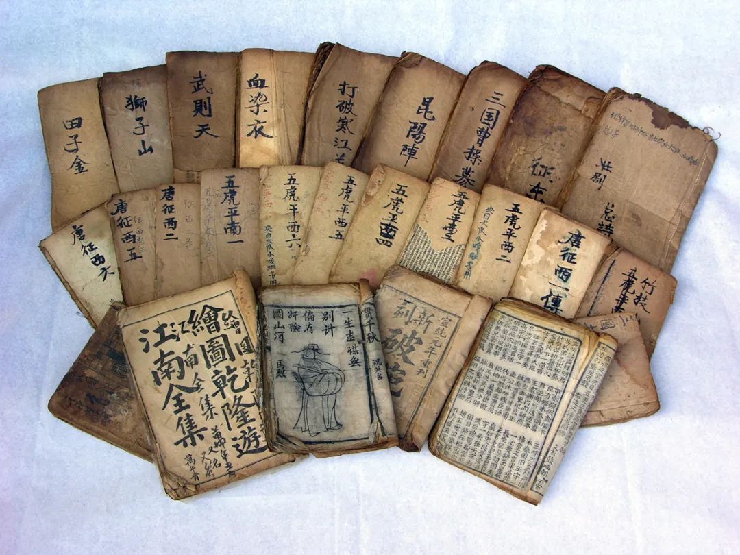 高昂的山歌,穿过秀美的山水密林,悠悠扬扬唱到了桃源外的人们心中。于是,人们穿上黑衣壮服饰,行走在那坡的壮寨之间,探寻黑衣壮古老而独特的文化内涵。“走进田林壮乡,格外神清气爽,壮家自古爱唱戏,放下犁耙就登场。”北路壮剧起源于百色田林县,流行于桂西地区,是北路壮话方言的地方戏曲。2006年,以北路壮剧、南路壮族、壮族师公戏等分支组成的壮剧列入第一批国家级非物质文化遗产名录。▲2005年普查旧州镇央白剧团发现北路壮剧的古老剧本 图/黄卫平 摄影