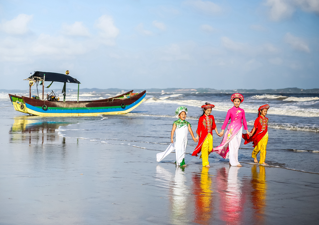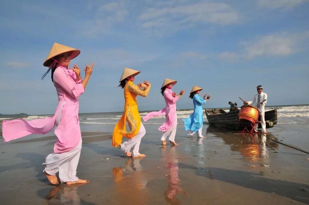 京族三岛面临北部湾,背倚十万大山,与越南近在咫尺,民族风光特点鲜明。其中,万尾金滩,是京族三岛最美的景点之一。