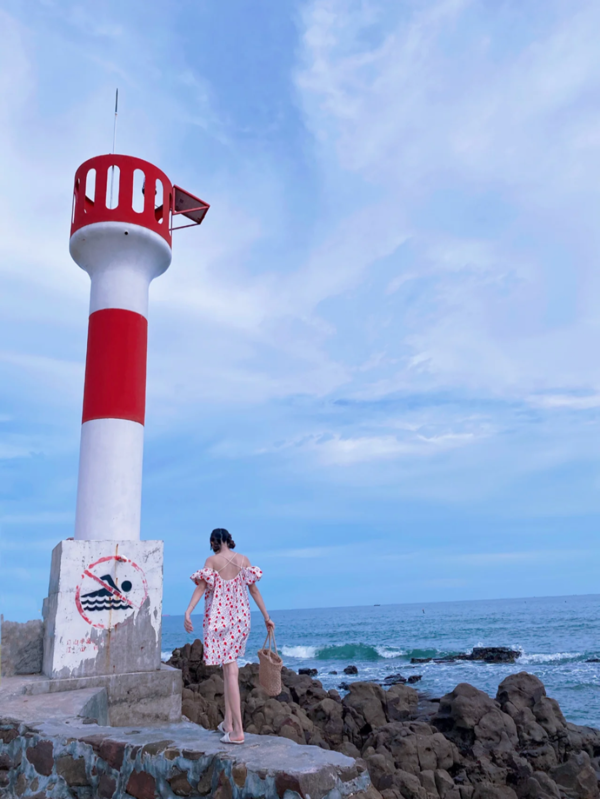 有人说这里的沙滩不输北海银滩,也有人说这里的石滩不输怪石滩,就是那红白相间的灯塔,也是极其夺目的存在。