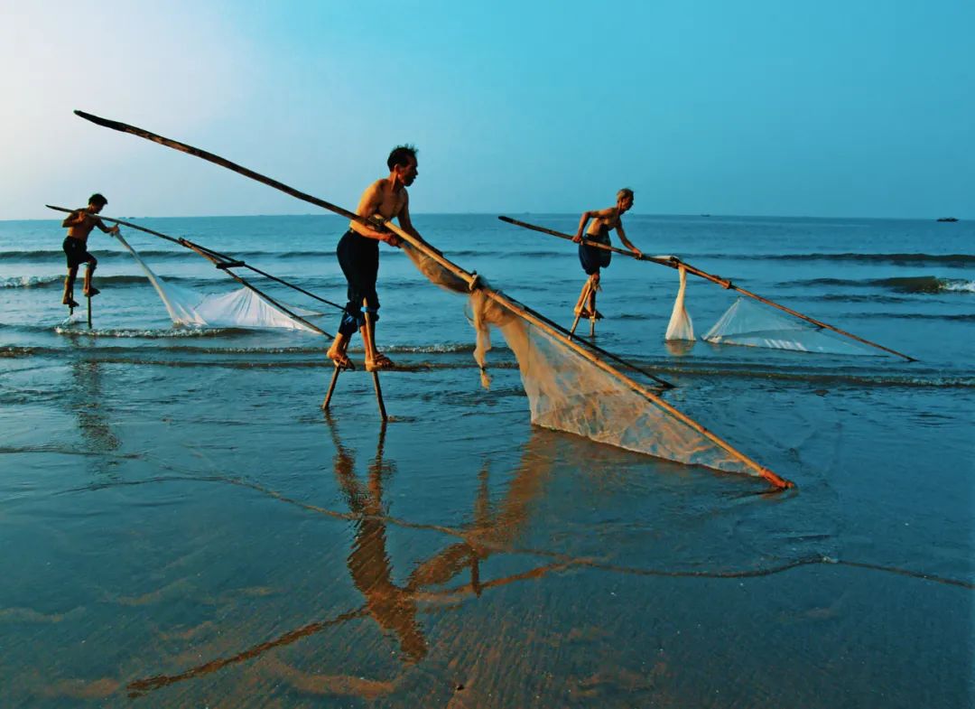 高跷捕鱼是一种对力量和平衡都有要求的捕鱼技巧,当地人说,一个真正的好渔民必须做到脚下站得稳,手上力气沉。
