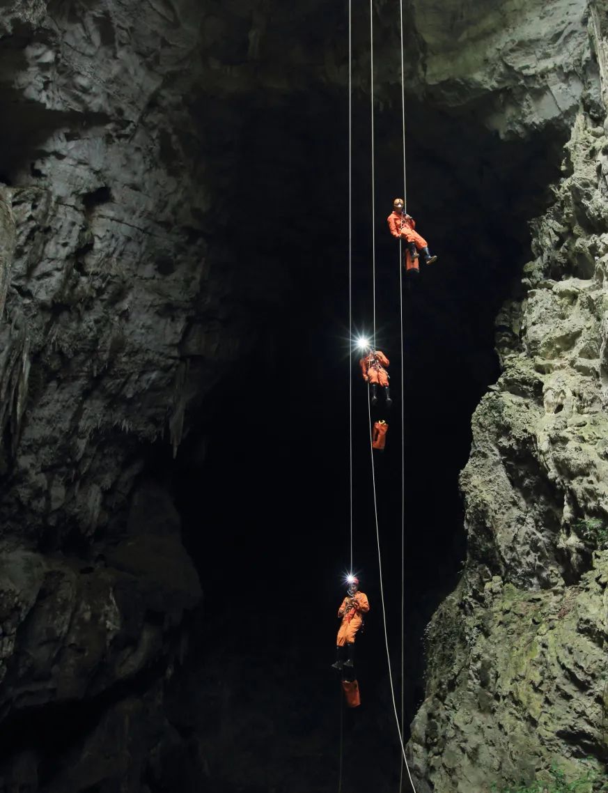▲2019《中国国家地理》科学考察活动在火卖蜂子荡天坑洞穴进行