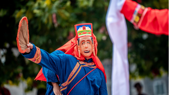 在环江,“傩”文化在明清之际便已盛行,其最具特色的傩面具,分为“三十六神,七十二相”,通过各异的表情、配色,彰显了传说故事中的诸神形象。