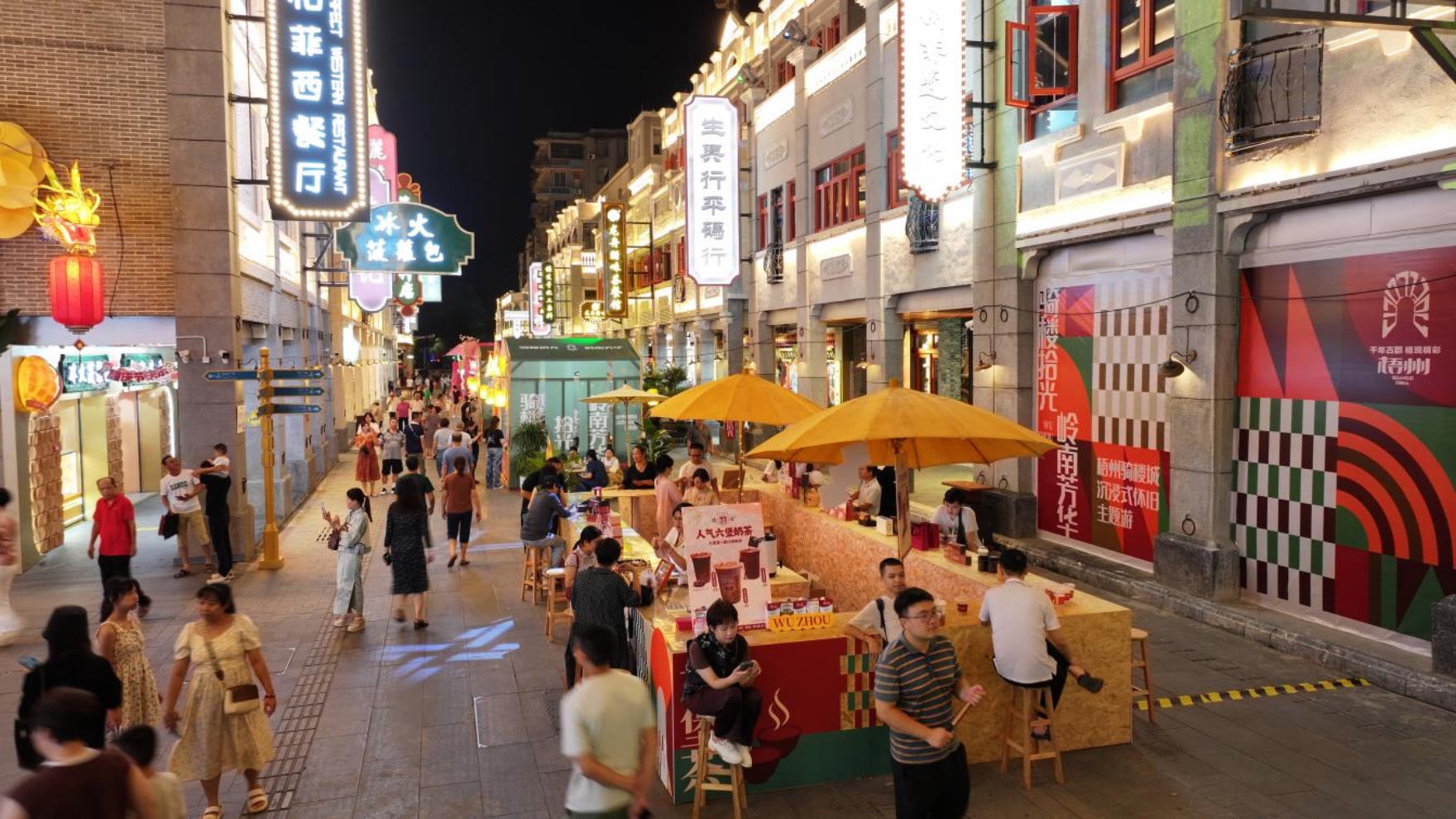 夜幕之下,大南路化身为一条流光溢彩的岭南风情长廊。特别打造的精致摊位沿街依次排开,汇集梧州本土匠人精心打造的国潮精品、传统美食——骑楼城文创冰箱贴、明信片,梧州粤剧、六堡茶、狮舞等主题文创应有尽有。