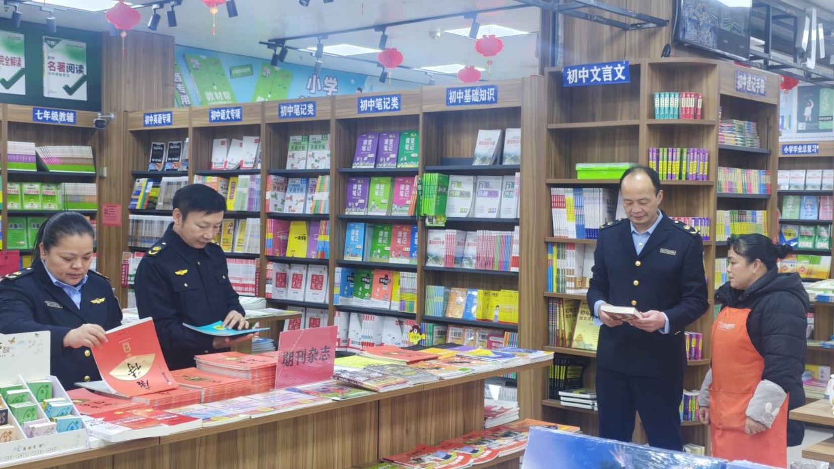 此次检查以中小学周边200米范围内的书店、文具店及流动摊贩为重点对象。检查人员采取随机抽查的方式,重点核查经营单位《出版物经营许可证》是否齐全,进销货清单是否规范,是否留存盗版教辅及卡通画册、口袋书等,督促经营户严把进货关,自觉抵制有害出版物。