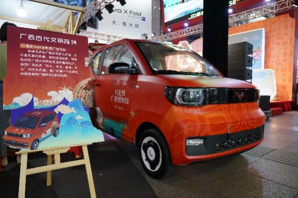 活动现场,由广西博物馆与五菱汽车联合打造的“行走的广西博物馆”主题改装车首次集中亮相。其中8辆改装车设计灵感来源于广西博物馆新馆展览体系中的8个展览,通过融合展览主题、提炼文物元素的方式,设计出创意车贴造型,让五菱新能源汽车变身为广西历史文化的“宣传大使”。