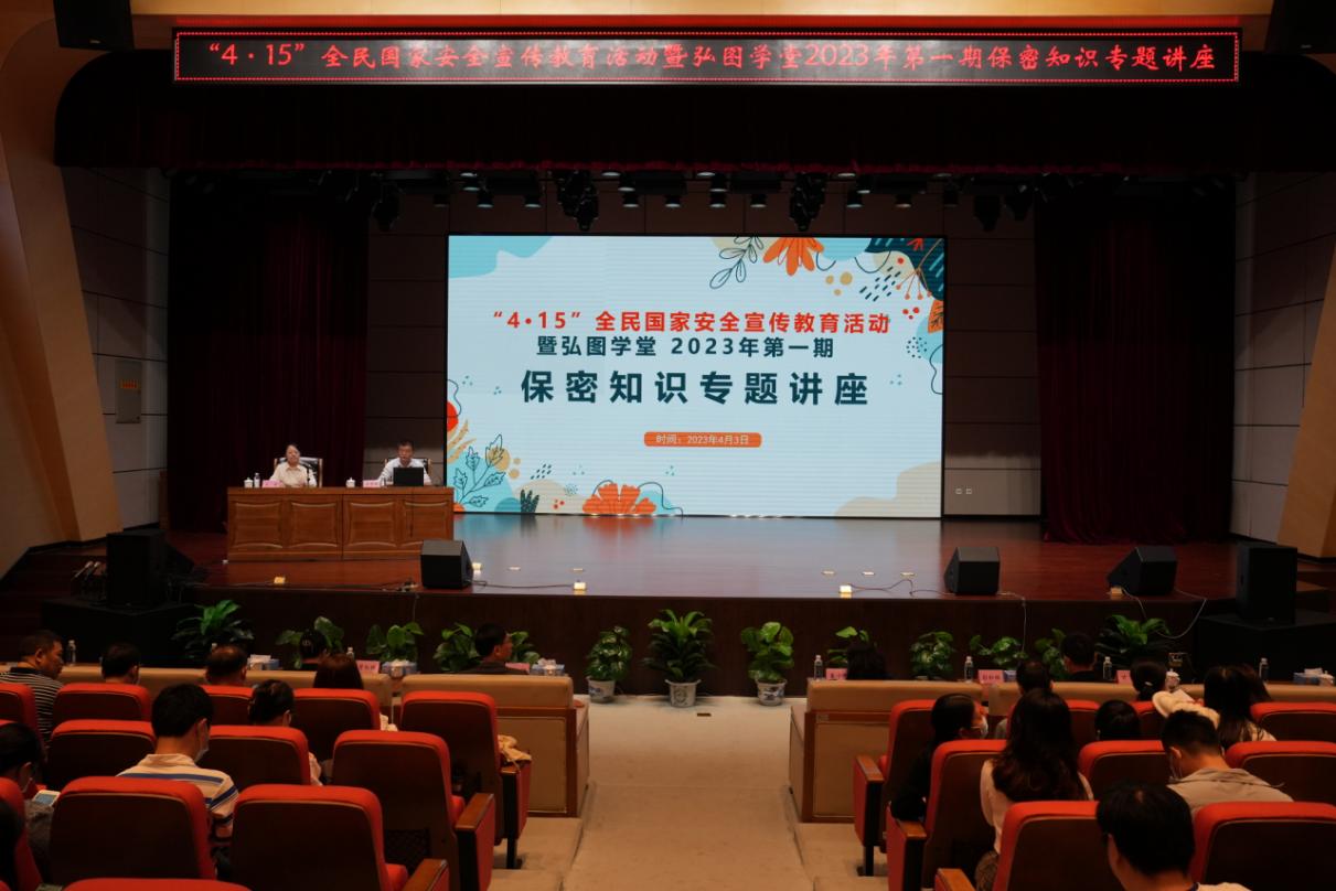 4月3日,广西图书馆举办“4·15”全民国家安全宣传教育活动暨“弘图学堂”2023年第一期保密知识专题讲座,共有145名馆员参加讲座。