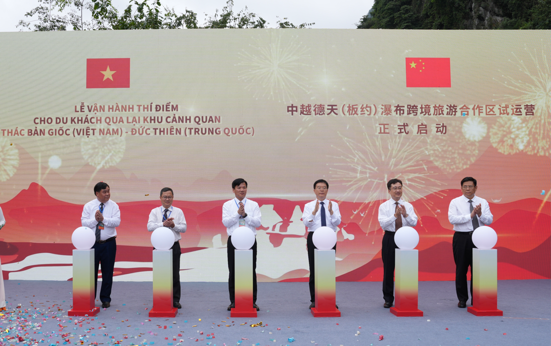 中国广西壮族自治区人民政府副主席苗庆旺,越南高平省委副书记、省人民委员会主席,高平省落实《合作保护和开发德天(板约)瀑布旅游资源协定》协调委员会主任黄春映,与中国外交部、文化和旅游部,越南外交部、文化体育和旅游部等中越相关部门代表共同出席启动仪式。