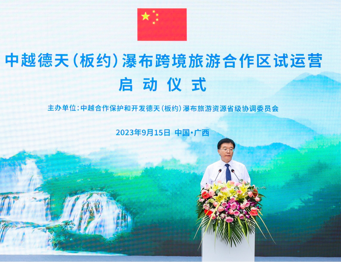 9月15日上午10:00,中越德天(板约)瀑布跨境旅游合作区(以下简称“合作区”)试运营启动仪式在合作区两国查验点举行。