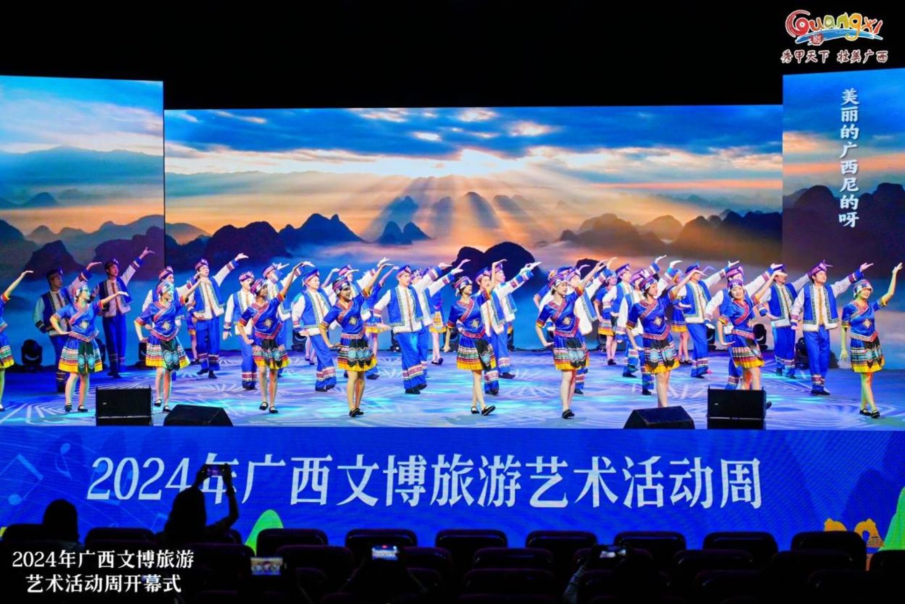 此次开幕式内容丰富多彩、形式新颖,精彩纷呈的文艺节目接连上演,串联起广西“文博”“旅游”“艺术”三个元素,并融入了诗词、歌曲、舞蹈等形式,不仅展现了八桂大地的壮美风光,更描绘出了广西人民美好生活的生动画卷。
