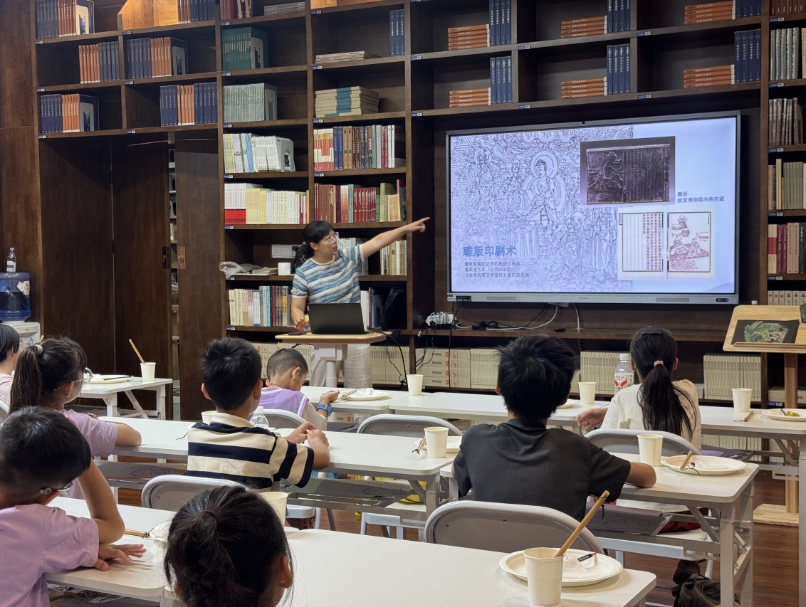 9月21日上午的“纸墨相承——中国古代印刷术”讲座与吹塑版画体验活动中,黄戈老师从雕版印刷的源流讲到活字印刷的革新,用生动案例向观众展现了古人的伟大智慧。在随后的体验环节,观众以“扇面山水”为主题,在吹塑板上勾勒出山水轮廓,蘸取颜料将图案拓印在纸扇上。当亲手完成的“印刷扇面”新鲜出炉,大家纷纷表示:“原来古代印刷要经过这么多步骤,亲手做一遍,才真正懂得了其中的匠心!”