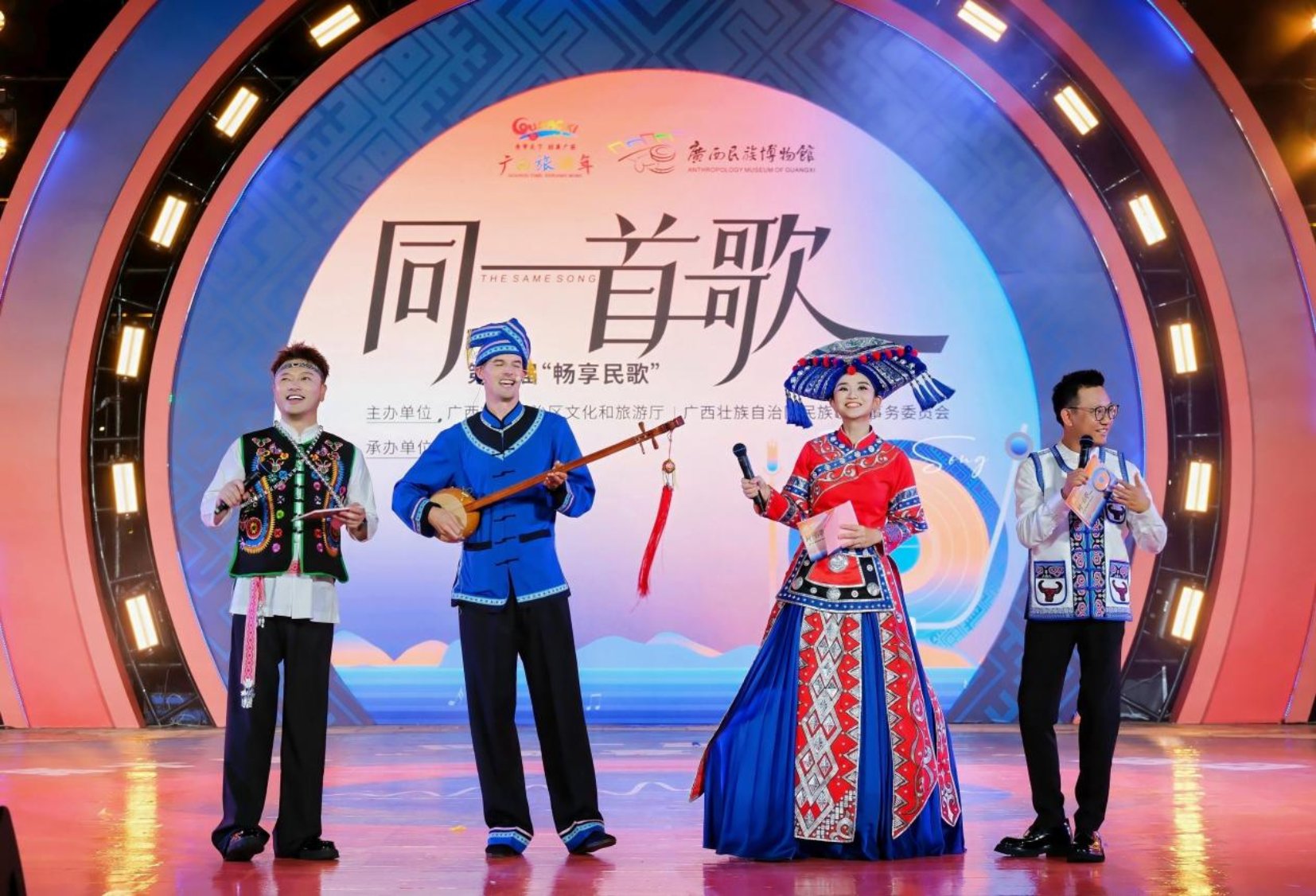 9月26日晚,由自治区文化和旅游厅、自治区民宗委共同主办,广西民族博物馆承办的第十届“畅享民歌”精品汇演在南宁民歌湖国际音乐小镇圆满举行。本届汇演以“同一首歌”为主题,汇聚广西、贵州、云南三省区民歌爱好者及外国友人,以山水为幕、民歌为媒,奏响民族团结的壮美和声,为观众奉献了一场声景交融的沉浸式民歌盛宴。