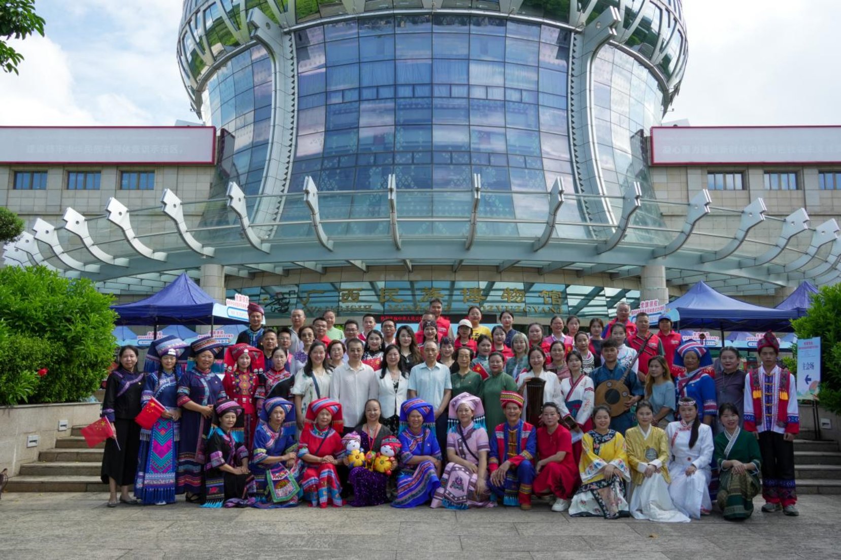 为深入贯彻落实习近平总书记关于铸牢中华民族共同体意识的重要指示精神,在国庆、中秋双节即将来临之际,9月28日,自治区文化和旅游行业社会组织党委在广西民族博物馆组织开展2025年“党旗领航 铸牢中华民族共同体意识文化集市”志愿服务活动。自治区文化和旅游厅相关业务处室负责同志、各行业社会组织党支部负责人及党员代表总计160人参与了此次活动。