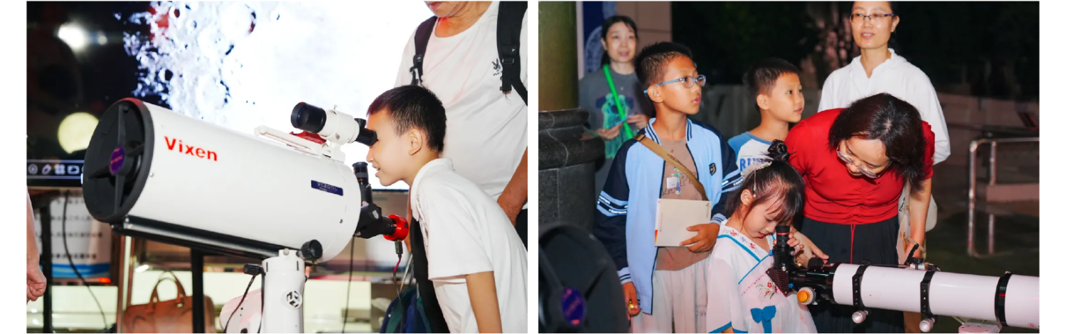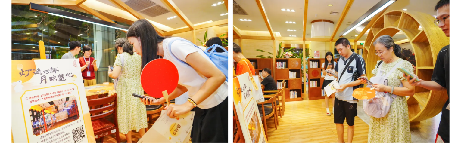 科技赋能,巧趣映心。在保留节目“猜灯谜”活动区,百余条趣味灯谜隐身于二维码中,不过读者只需要拿出手机扫一扫,即可一键高效答题,在便捷互动中感受古今交融的妙趣。在“欢乐今‘消’”和“月满‘接’福”游戏体验区,指尖轻触手机屏幕,滑动月饼图标,即可轻松完成趣味挑战。此外,游园会还特别联合广西观星会活动协会开展观星体验活动,邀请读者透过专业天文望远镜遥望星河,一同感受宇宙的深邃与神秘。