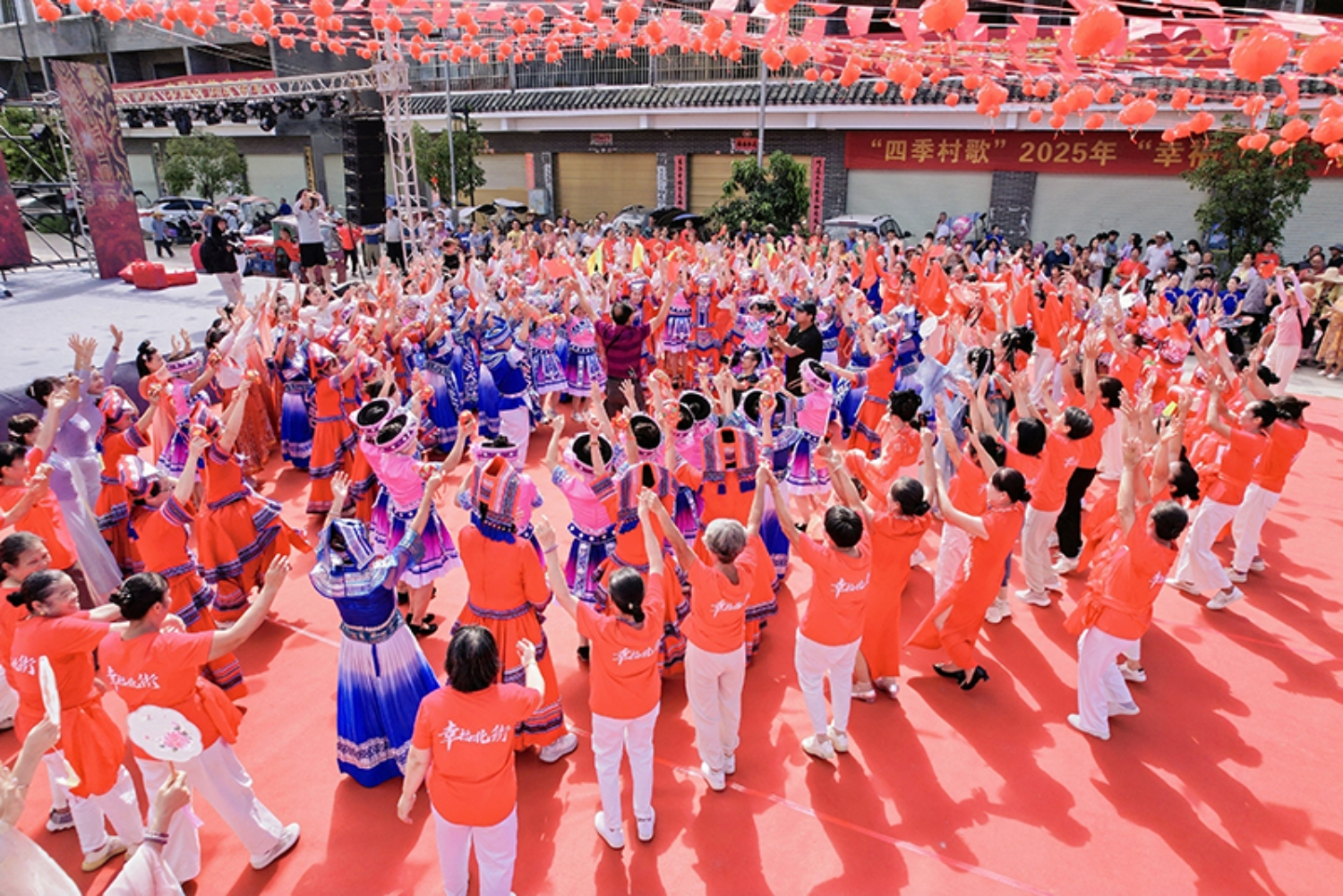 10月5日晚,随着悠扬的歌声在来宾市象州县中平镇夜空回荡,四季村歌2025年“幸福北街”嘉年华活动圆满落下帷幕。作为本次活动的主办单位,广西群众艺术馆依托“千诗万旅”文化志愿服务品牌项目,以文化为纽带、以志愿为桥梁,全程参与前期策划排练与现场组织执行,携手广西旅游协会、中平镇人民政府等单位,与3000余名各民族群众共庆中秋佳节,为乡村振兴注入澎湃文化动能。