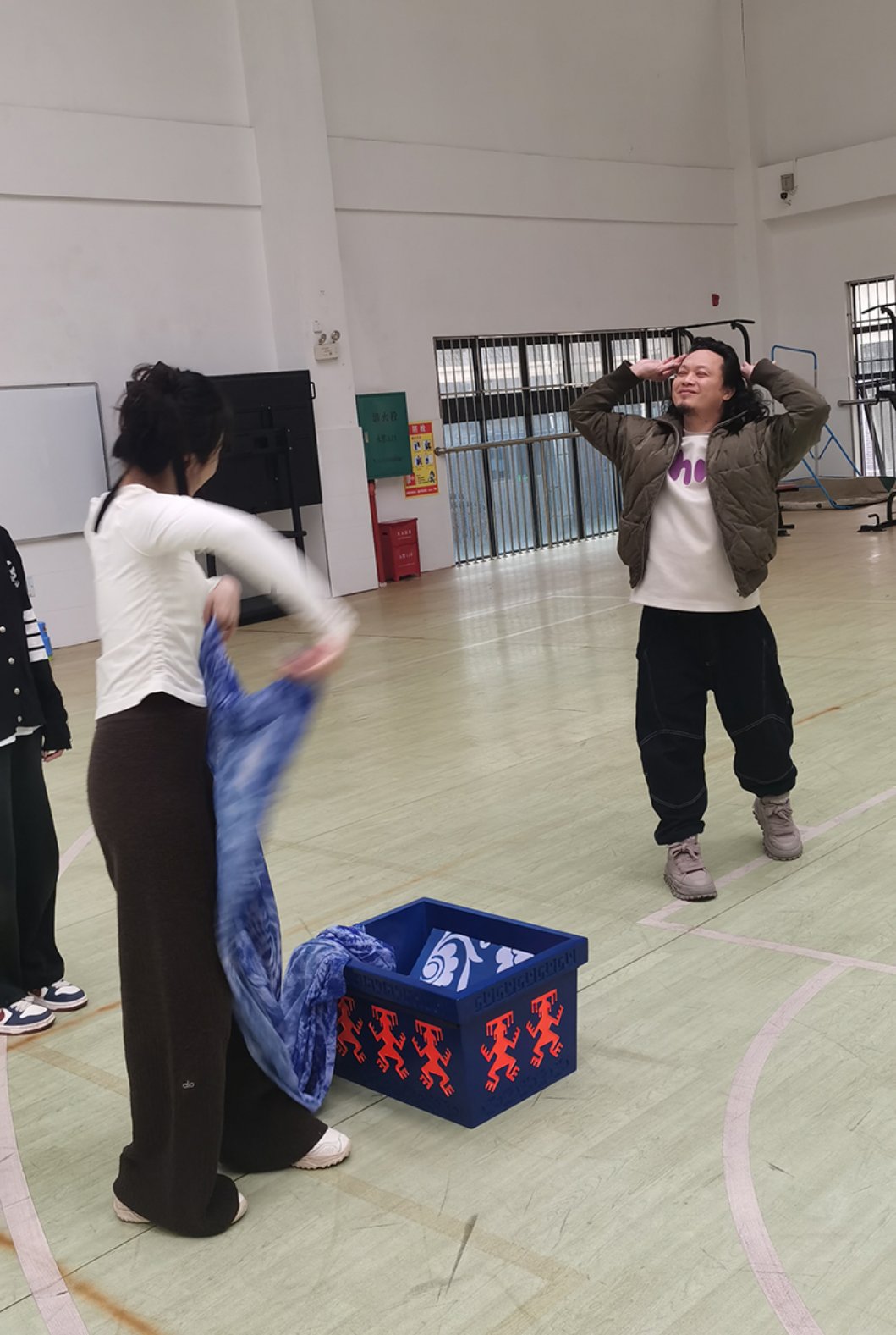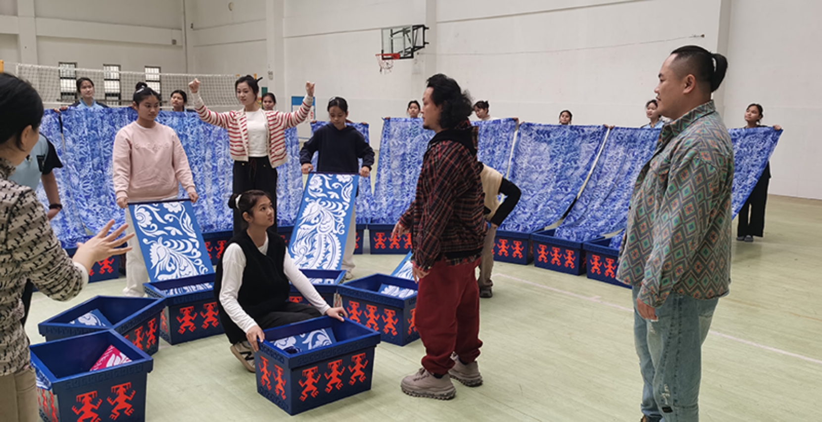 为了让南宁市特殊教育学校的孩子们在全国舞台上绽放光彩,覃祉幸老师与3位文化志愿者骨干自创作策划之初便计划将“广西民族特色”与“孩子们的成长特质”深度结合,最终选定壮锦作为创作灵感,打造舞蹈《锦上添花》。在一个多月紧锣密鼓地排练中,团队面临着双重挑战:一方面,由于孩子们存在语言沟通障碍,排练时只能通过手势、表情、反复示范等方式传递动作要领,一个简单的肢体配合往往需要数十次甚至上百次的耐心指导;另一方面,考虑到孩子们的身体条件与专业基础差异,团队需对舞蹈动作进行反复调整,在保证艺术美感的同时,确保每个孩子都能安全、自信地完成表演。“我们从不把‘特殊’当作局限,反而希望通过舞蹈让孩子们发现自己的闪光点。”覃祉幸老师在回忆排练过程时说道,孩子们眼中对艺术的渴望,始终是团队坚持的动力。