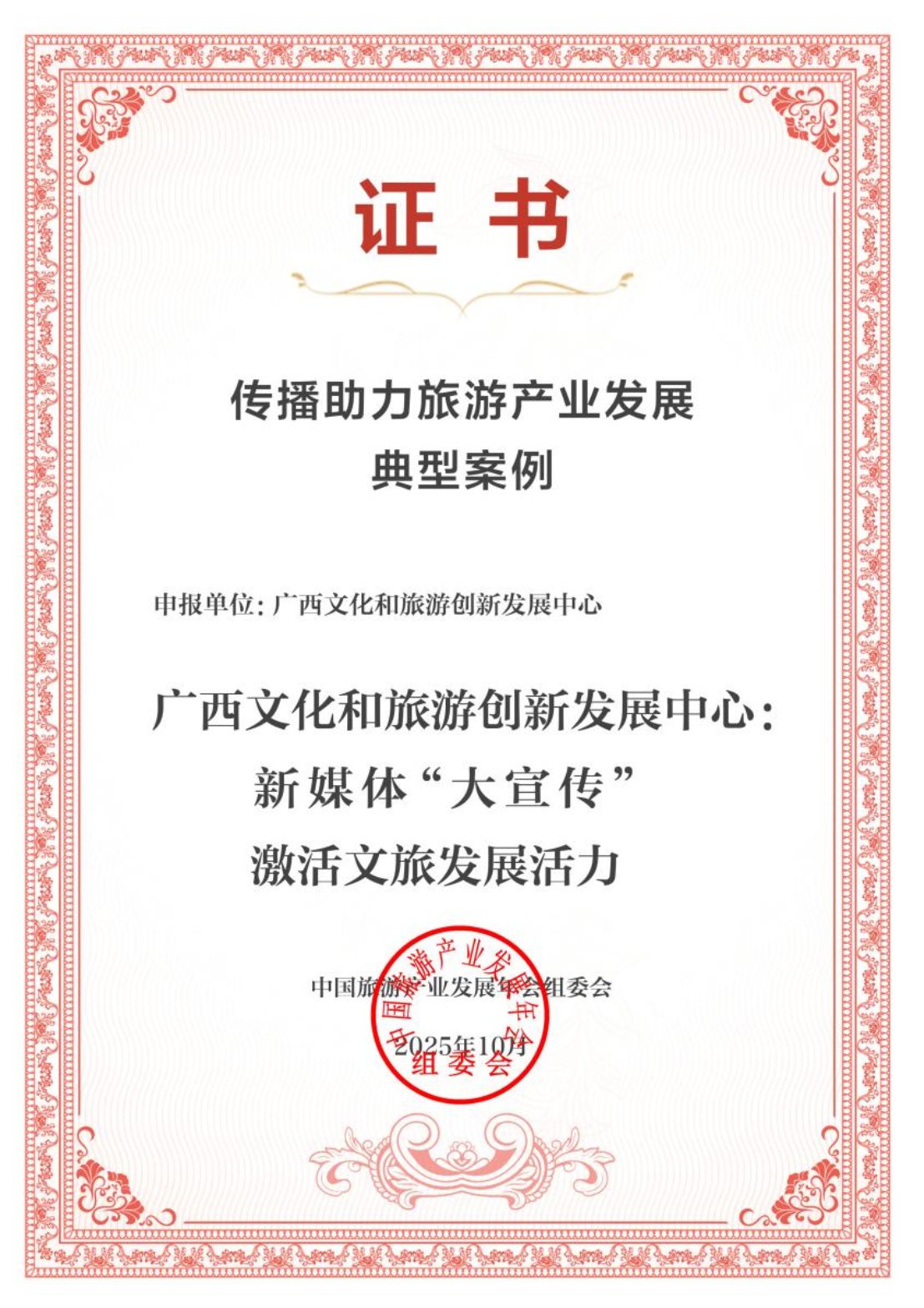广西文化和旅游创新发展中心《新媒体“大宣传”激活文旅发展活力》获评“传播助力旅游产业发展典型案例”
