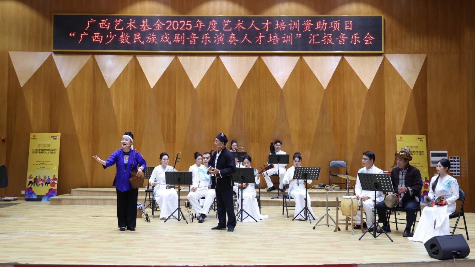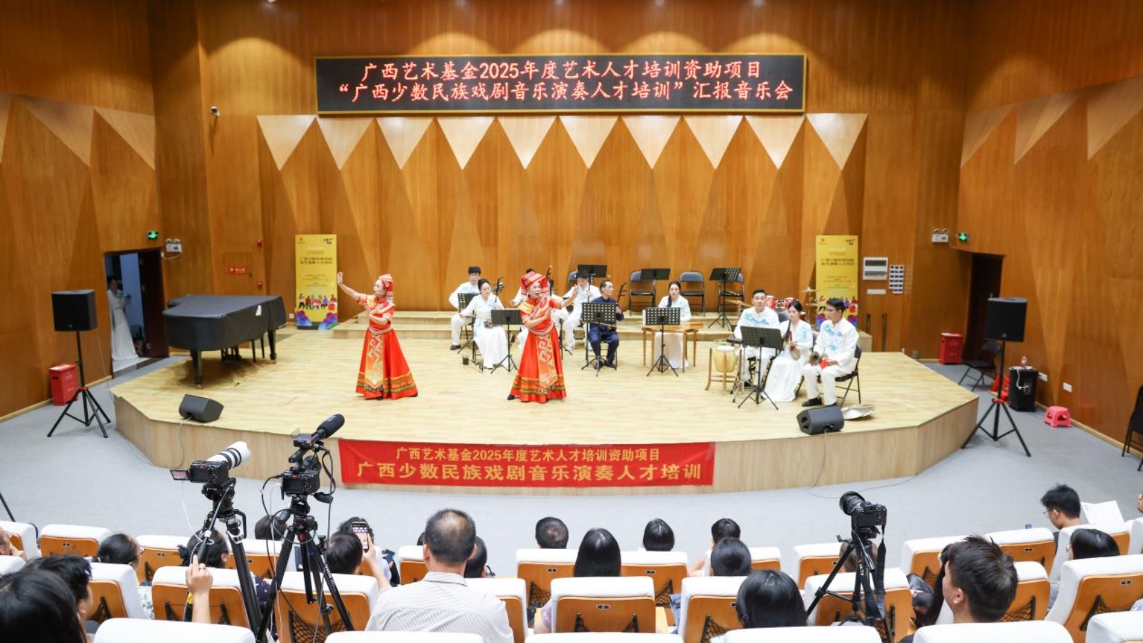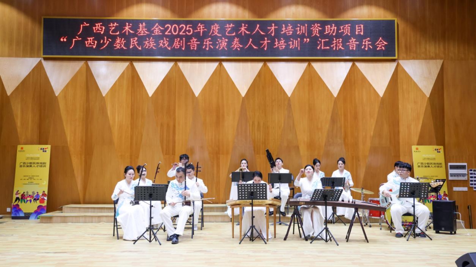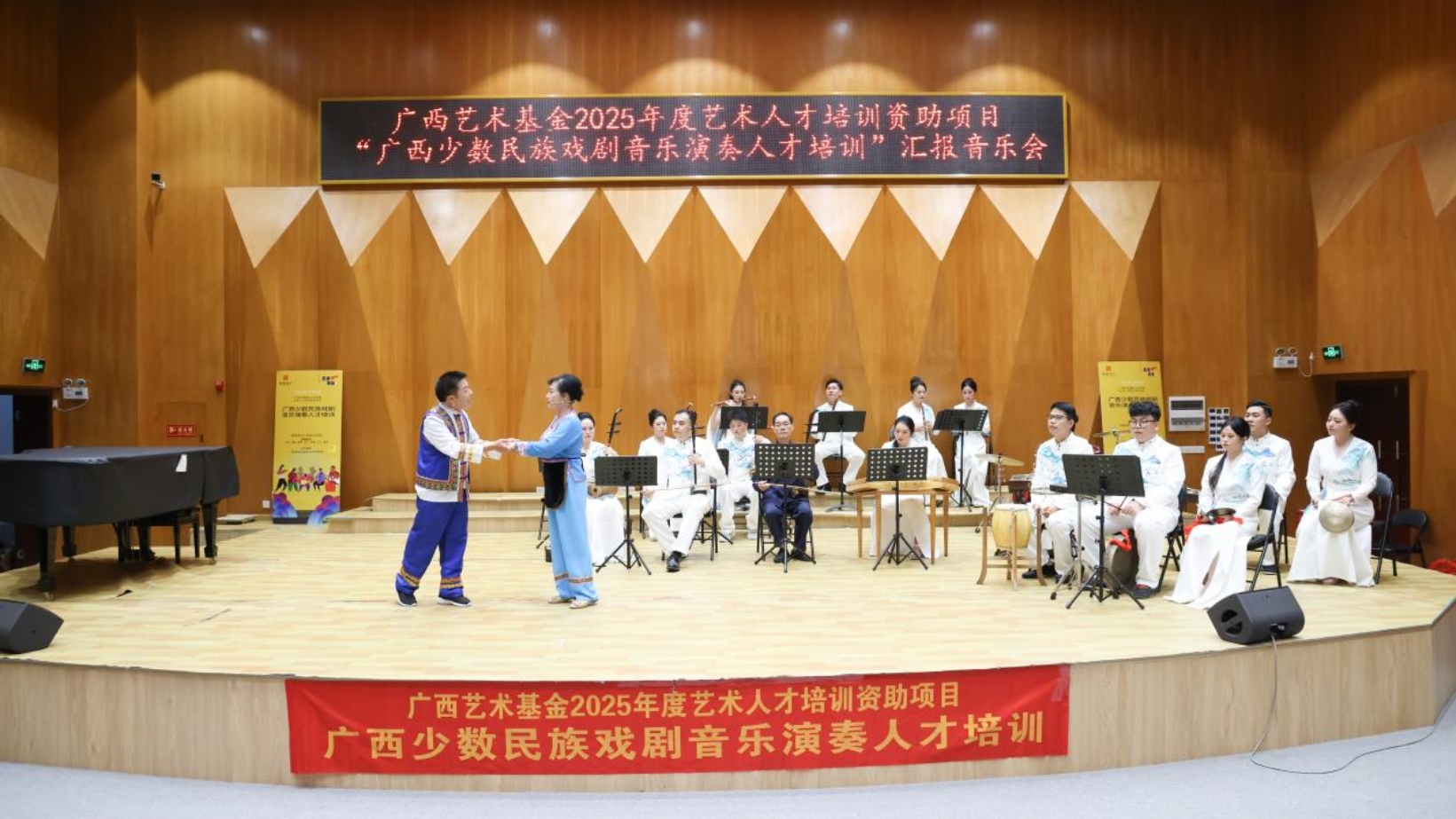 “乐海有戏——广西少数民族戏剧音乐演奏人才培训”汇报音乐会,是对此次培训成果的一次现场检阅与综合呈现。15名学员与广西少数民族戏剧的资深演员、乐师们携手合作,让平日里难得一见的广西少数民族戏剧齐聚邕城,吸引了众多目光,唤起了人们对民族戏剧传承与发展的广泛关注。