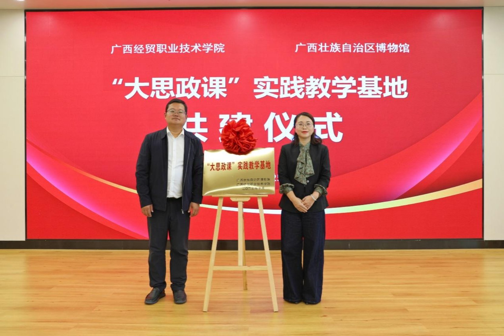 10月25日上午,广西博物馆与广西经贸职业技术学院共建的“大思政课”实践教学基地揭牌仪式在该馆顺利举行。广西经贸职业技术学院、广西博物馆有关负责同志及职工代表、师生代表出席仪式。