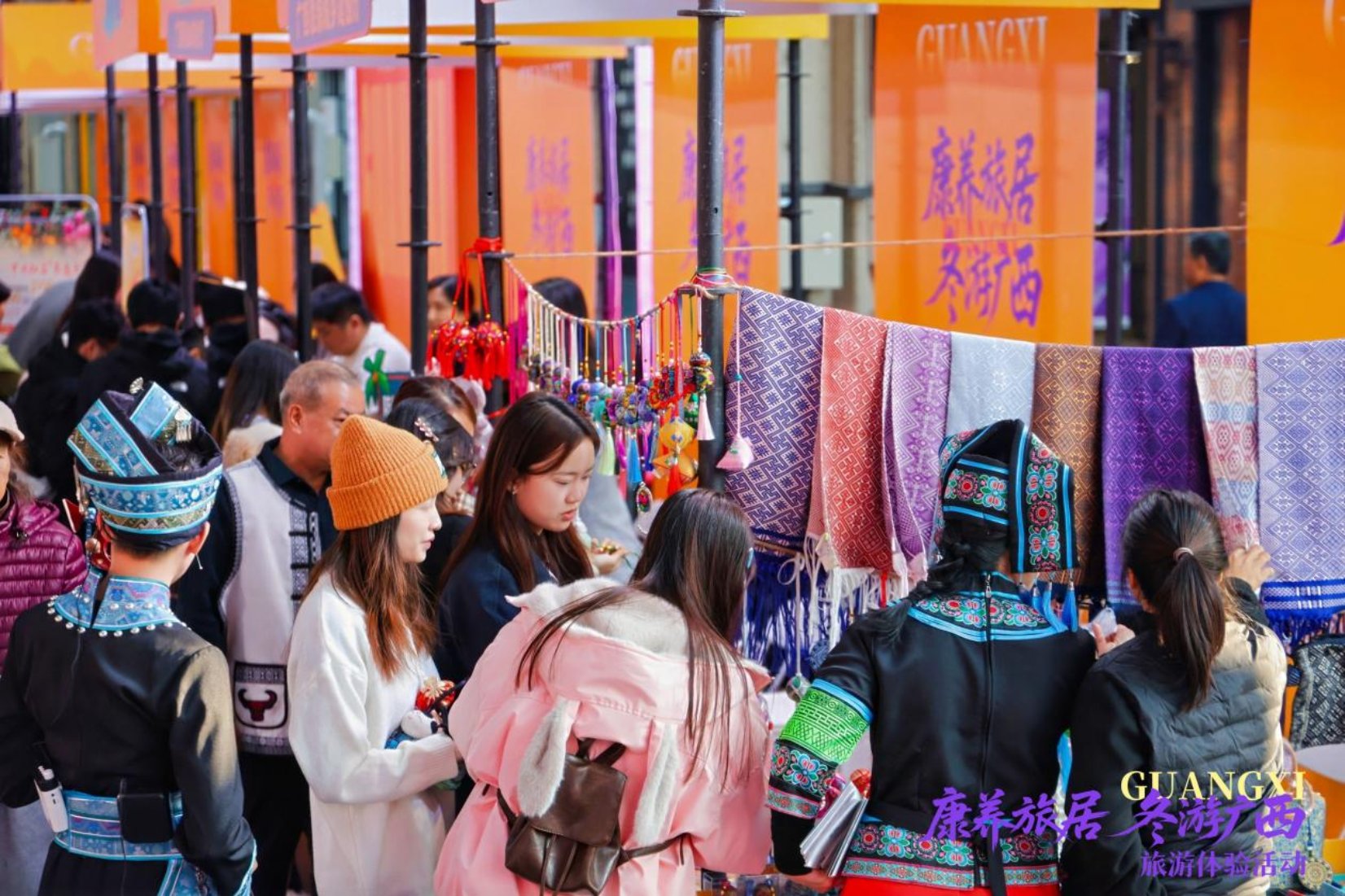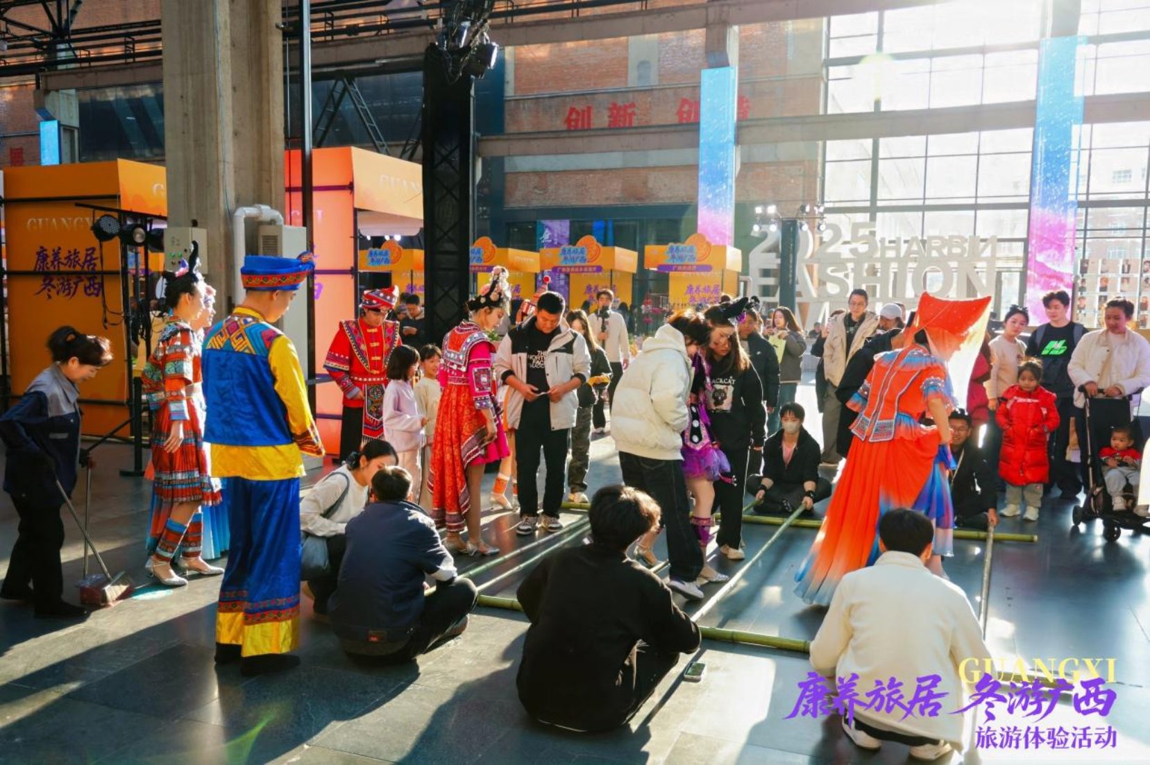 期间,与推介会同步亮相的还有在哈尔滨红博西城红场举办的“康养旅居 冬游广西”旅游体验活动。现场开展了水果美食长桌宴、民俗竹竿舞、特色民俗表演等体验项目,吸引了大量市民游客驻足打卡。