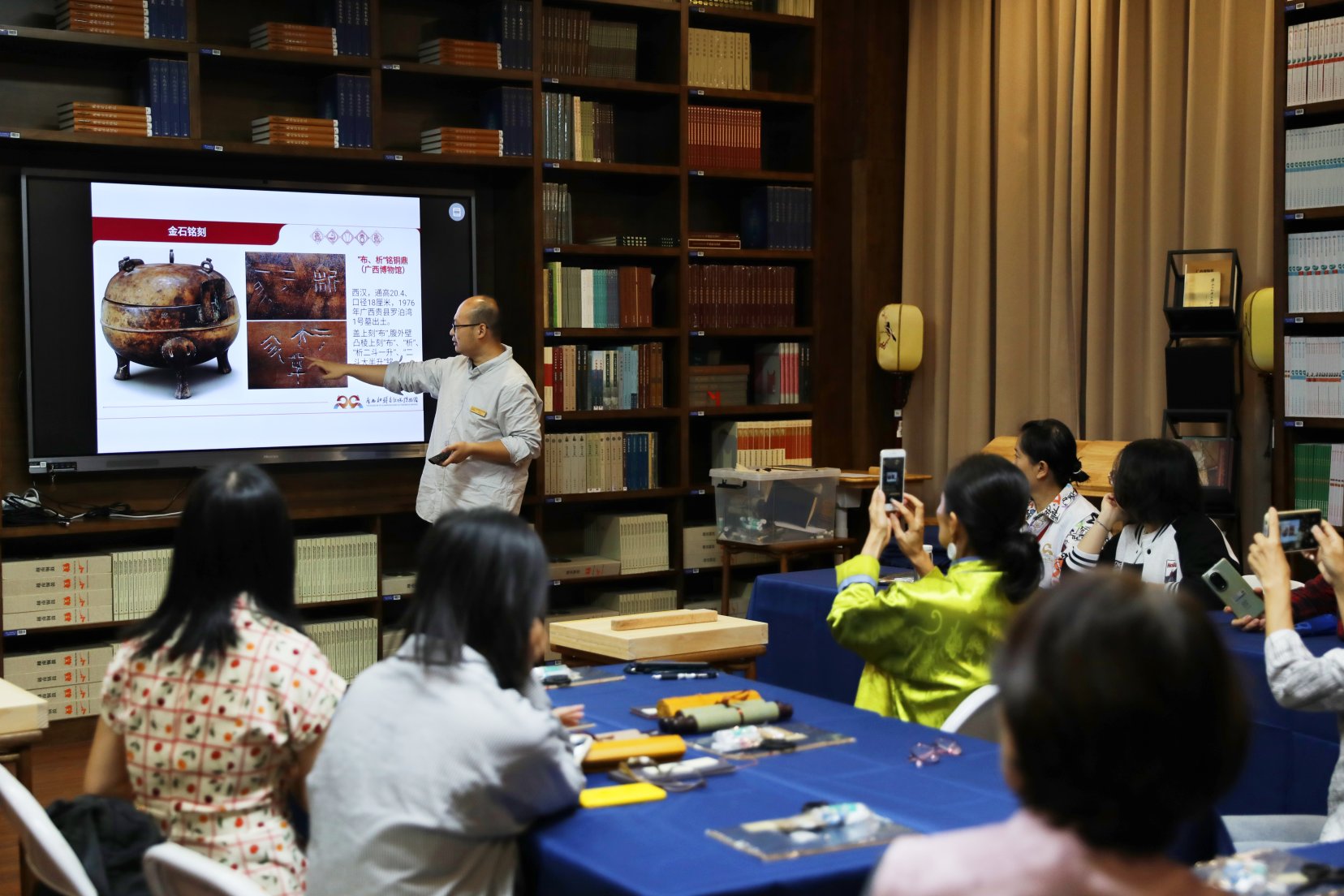 广西博物馆古籍保护工作人员张弛为参加活动的人员授课