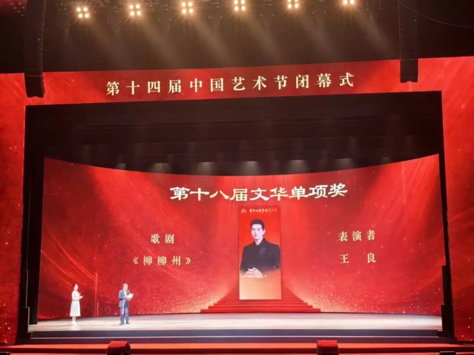 11月4日,第十四届中国艺术节在重庆闭幕,闭幕式上公布了第十八届文华奖评选结果。其中,由广西壮族自治区党委宣传部、广西壮族自治区文化和旅游厅出品,广西文化产业集团联合出品,广西歌舞剧院创排演出的第十八届文华奖提名剧目——民族歌剧《柳柳州》,其主要演员、广西歌舞剧院一级演员王良荣获第十八届“文华表演奖”(全国仅10名)。