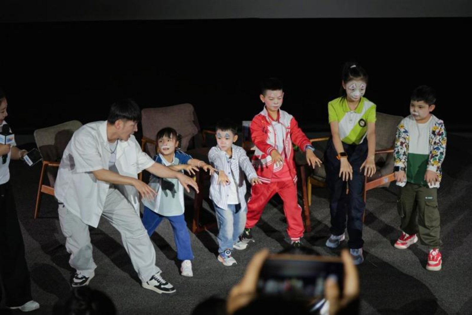主演尹亮老师带领小读者学习歌舞剧中“猫神”标志性动作