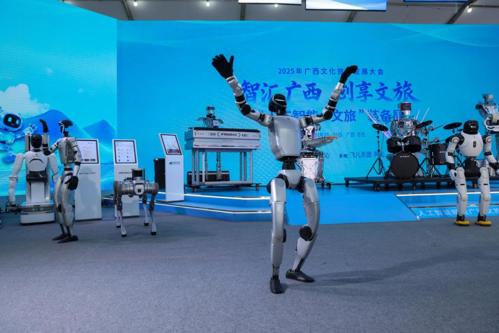 无人驾驶航空器、无人驾驶观光车、智能导览机器人……在百色市半岛公园,广西“人工智能+文旅”装备展让人眼前一亮,智能产品、技术应用等带来的科技感吸引参观者驻足。本次展会汇聚全国46家企业,集中展示270余项AI技术在文旅领域的应用成果。